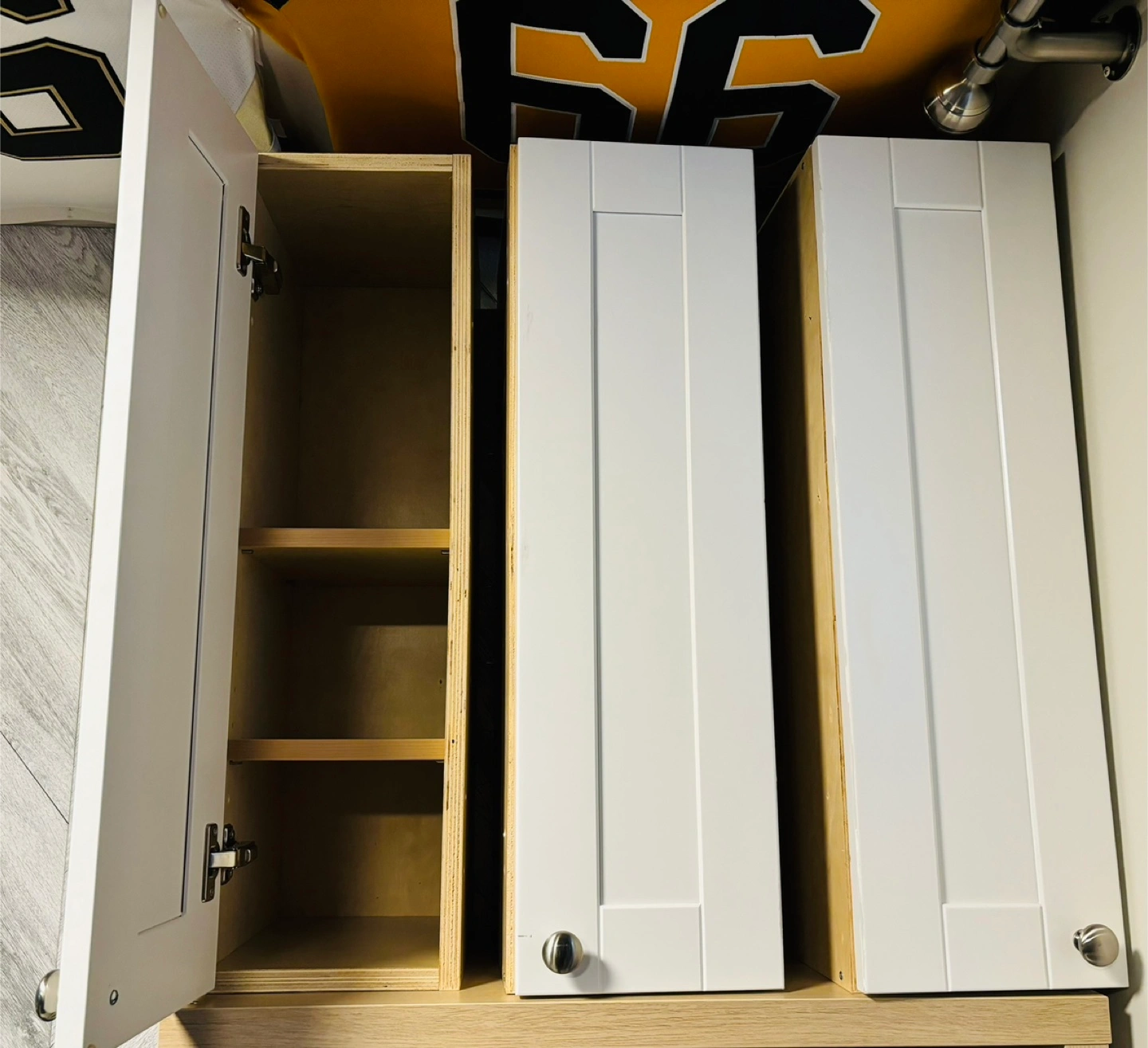 Selling a set of three cabinets. They're in great shape and ready to be installed! They are white with a simple, modern design, perfect for a kitchen upgrade or renovation project. Come take a look!