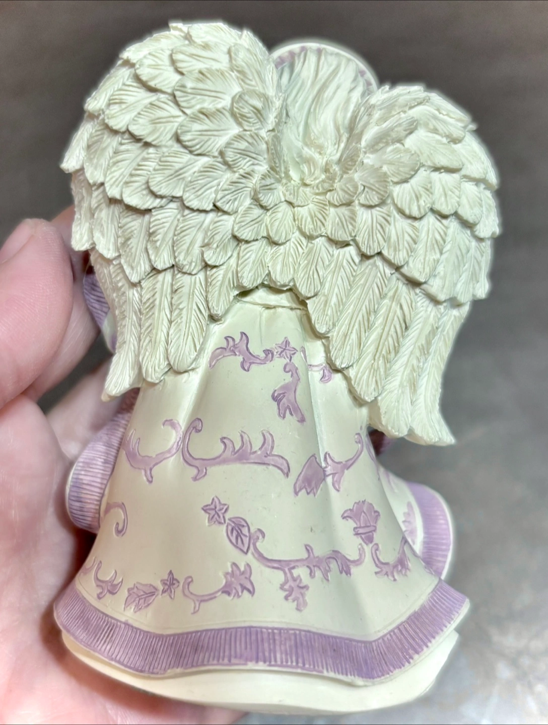 The figurine is decorated with purple and gold accents.