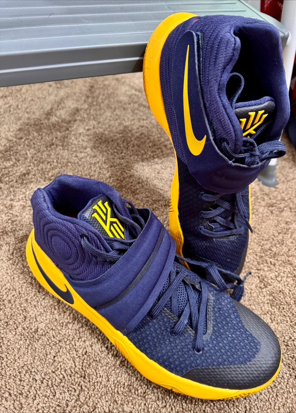 These are used Nike Kyrie basketball shoes, offering a great fit and support for your game. These shoes have been worn but are still in good condition, ready for the court or casual wear.