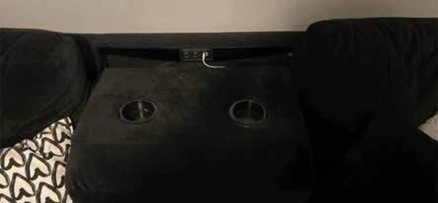 $450 or best offer Selling a black sectional sofa! It features convenient storage compartments for blankets, pillows, or anything else you need to keep handy. Has two cupholders and working outlets for convenient charging while relaxing. It's in good condition and ready for a new home