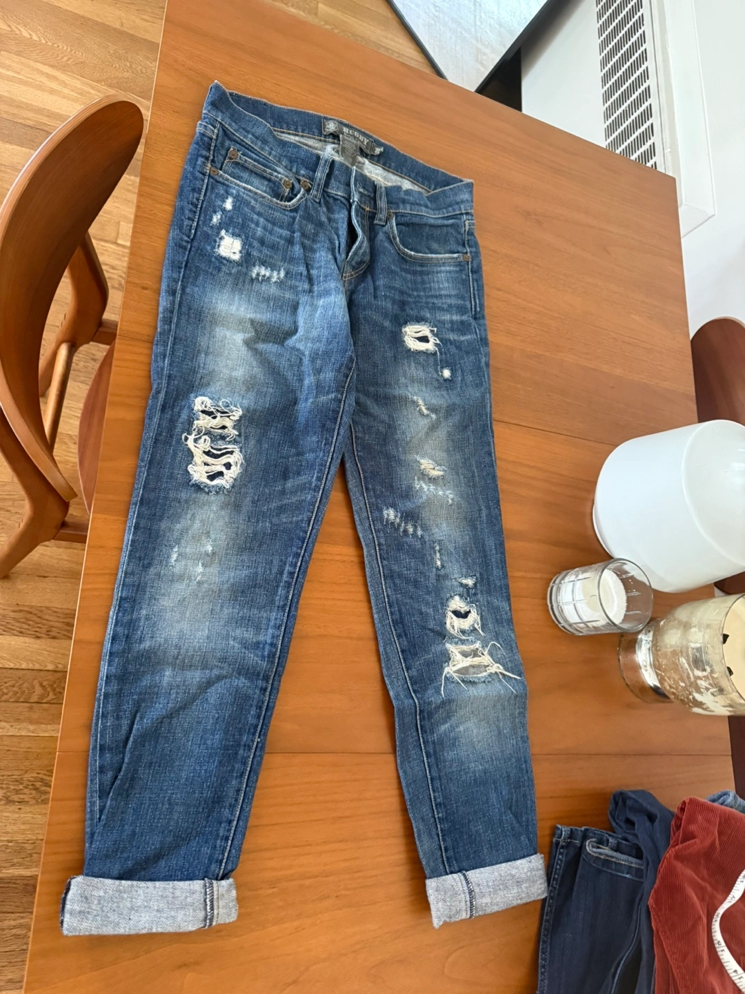 Selling a pair of Rugby Ralph Lauren distressed denim jeans in size 26. These jeans have a cool, worn-in look with intentional distressing. They are made from 98% cotton and 2% elastane for a comfortable fit. Check out the photos for details!