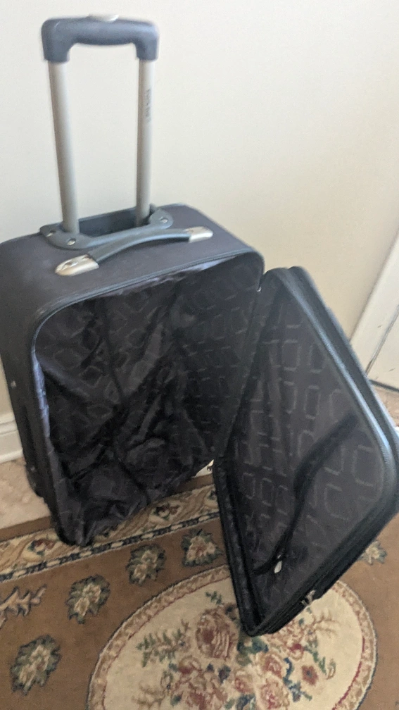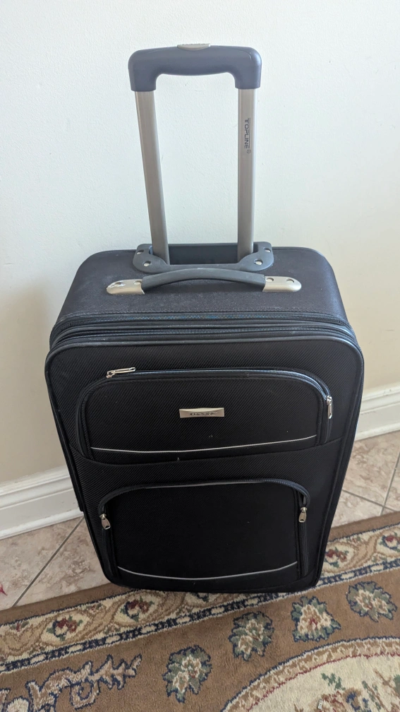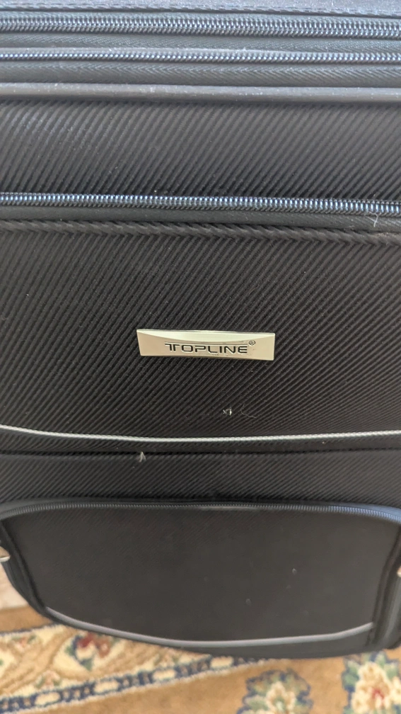 Selling a Topline carry-on luggage in black. It's in good condition and ready for your next trip! Perfect for fitting under the airplane seat or in the overhead bin. Has a retractable handle and wheels for easy transport is light weight 4 weel 2 feet x 1 foot 16