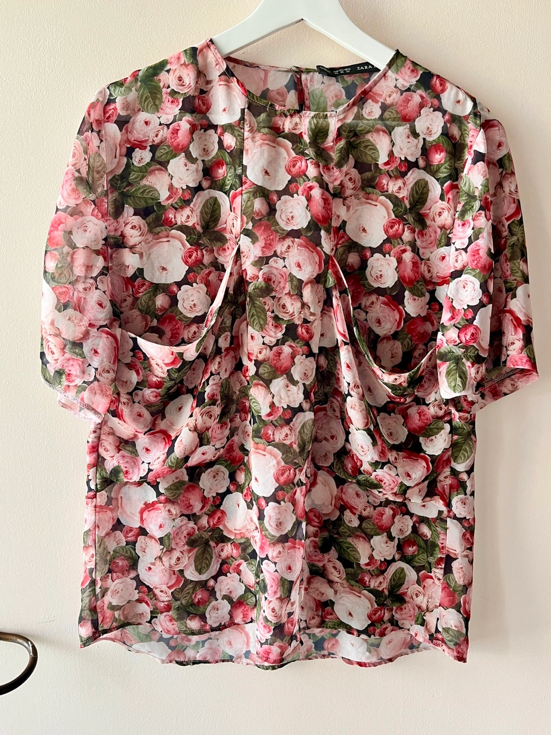 Beautiful Zara blouse with a lovely floral print! It's a size XL and made of a sheer, lightweight material, perfect for spring or summer. In great condition!
