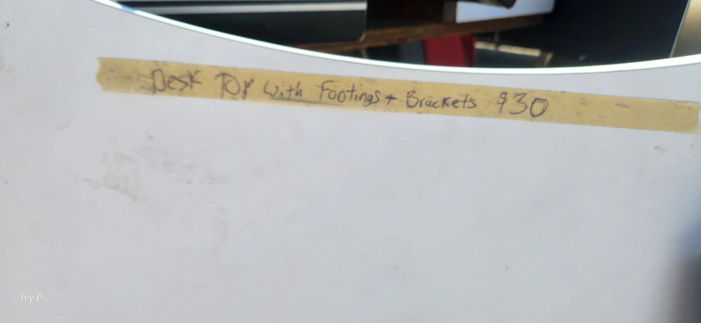 .Cresent Shaped Desk top with 4 legs and brackets.