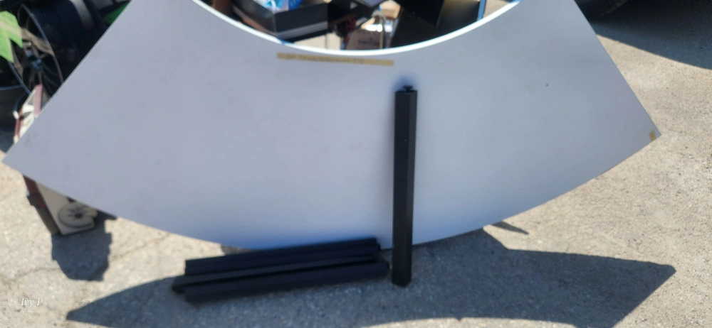 .Cresent Shaped Desk top with 4 legs and brackets.