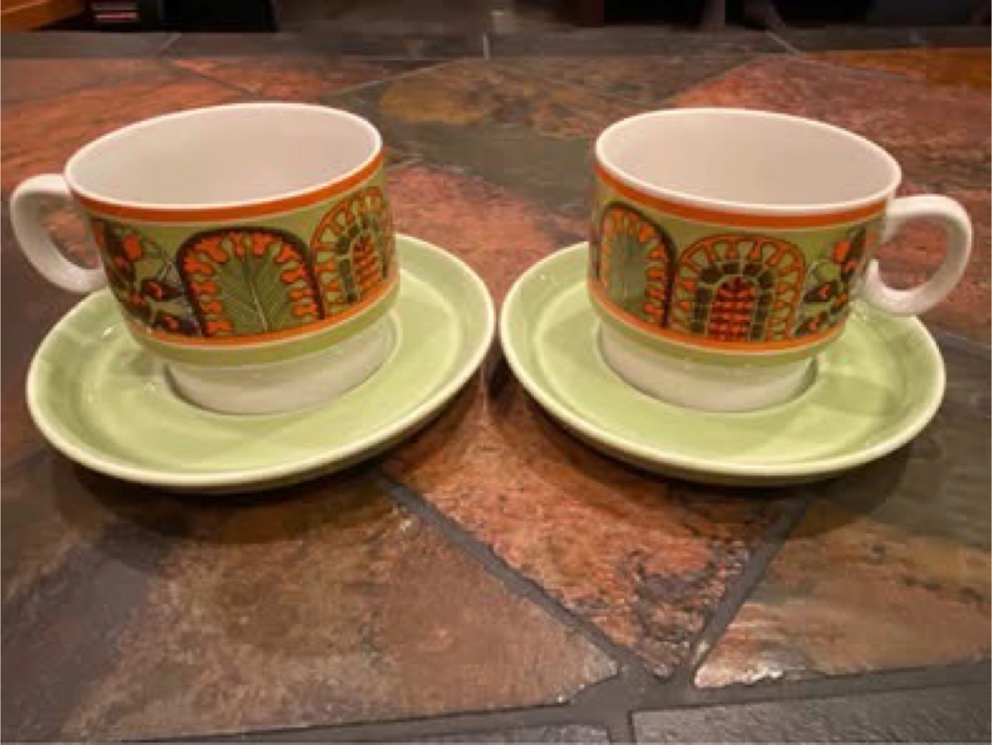 Vintage Retro Italian Porcelain Coffee Cups with Saucers
