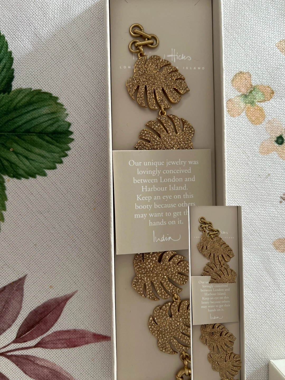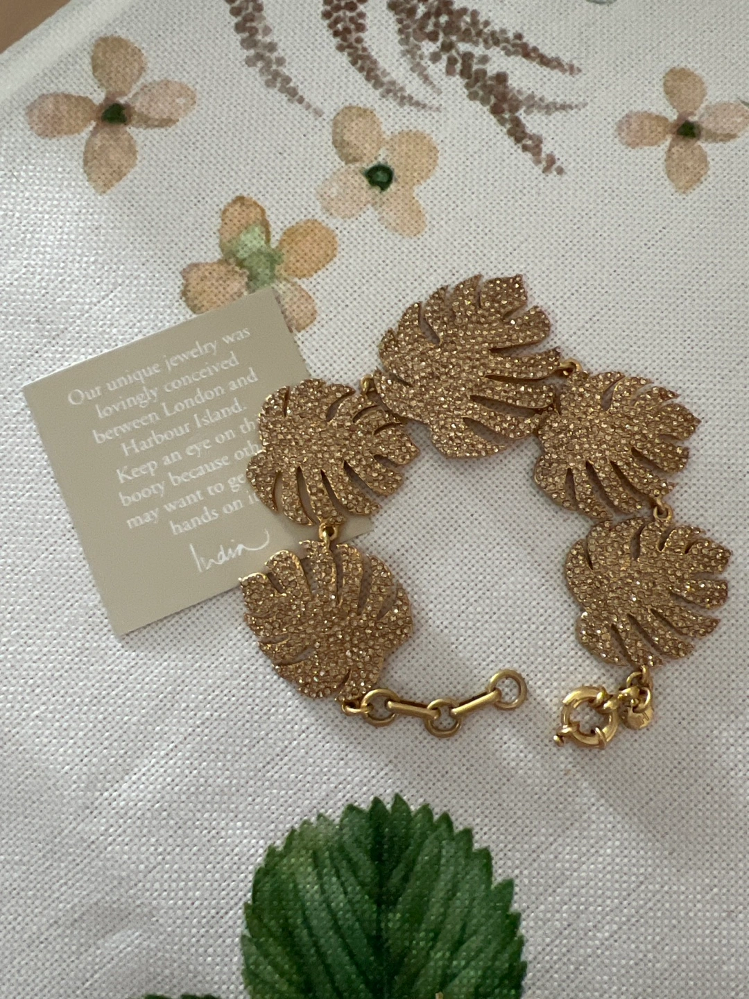 60This unique India Hicks bracelet Elegant gold leaf bracelet , with embedded crystals. Fits wrist up to 8 1/2” Perfect for adding a touch of luxury to any outfit. 2- available $125 OBO cross posted
