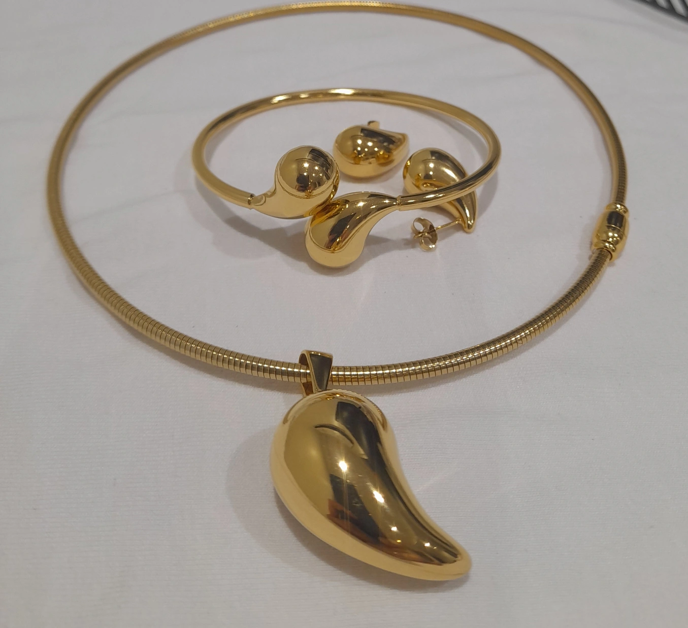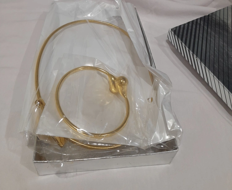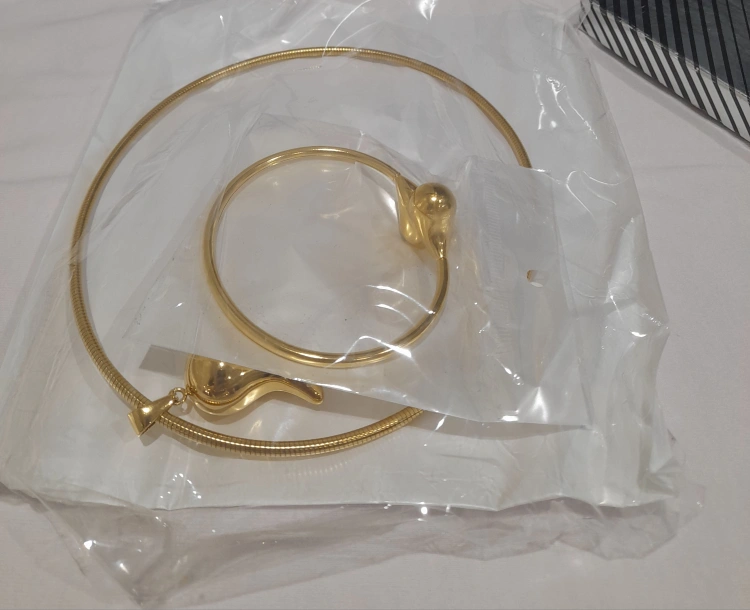 15Selling a brand new gold tone jewelry set! This set includes a necklace, bracelet, and a pair of earrings. It comes in its original box, perfect as a gift or a treat for yourself