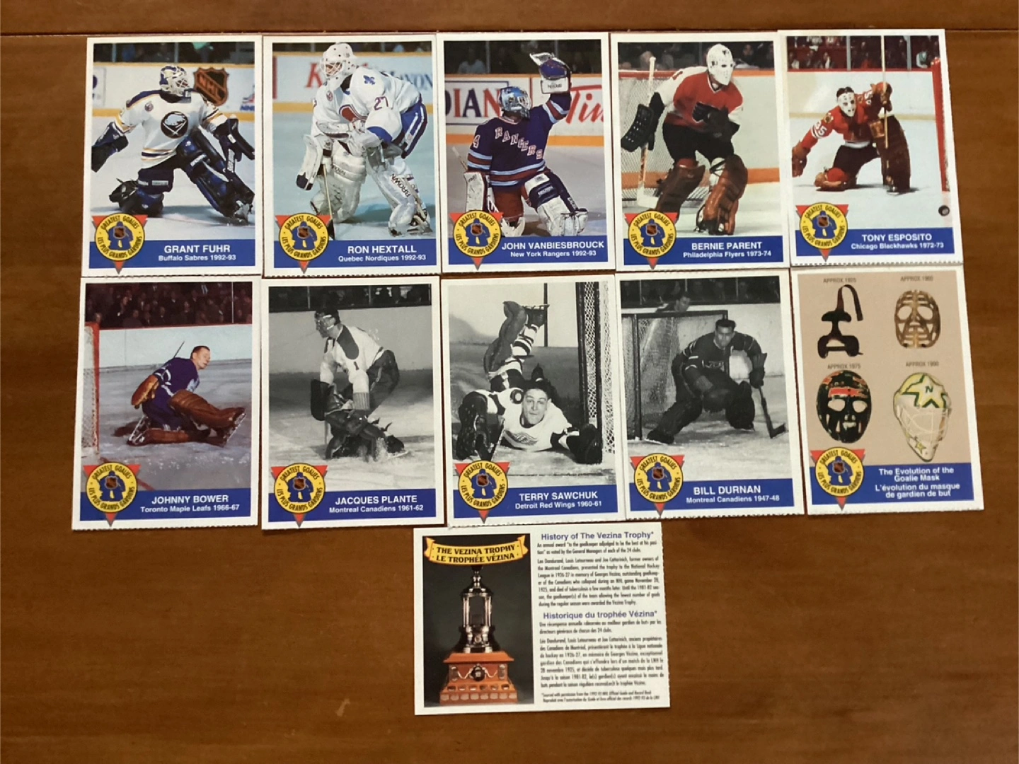 BEST OFFER - All clean & in MINT condition - Grant Fuhr, Ron Hextall, John Vanbiesbrouck, Bernie Parent, Tony Esposito, Johnny Bower, Jacques Plante, Terry Sawchuk, Bill Durnan, The Evolution of the Goalie Mask, The Vézina Trophy - Shipping available - Located at Pape ave & Cosburn ave Toronto - Call Patrick @ 416-930-8338. - Thanks & check out my other posts