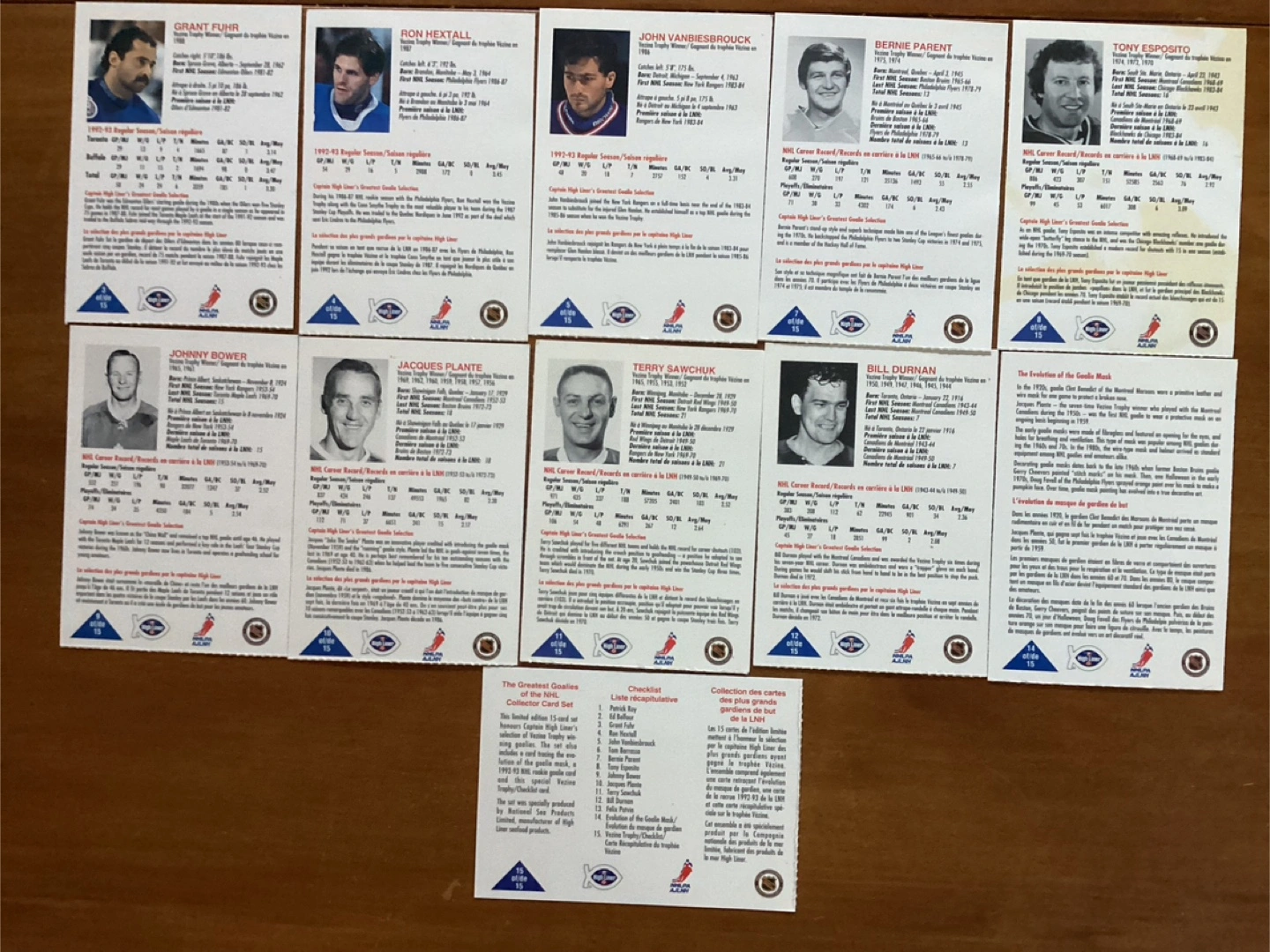 11 of 15 Set 1993-94 HIGHLINER GREATEST GOALIES Cards !