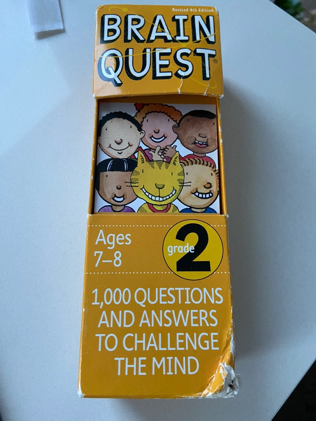 Selling a Brain Quest game for Grade 2 students! This is the revised 4th edition. It's designed for ages 7-8 and includes 1,000 questions and answers to challenge the mind