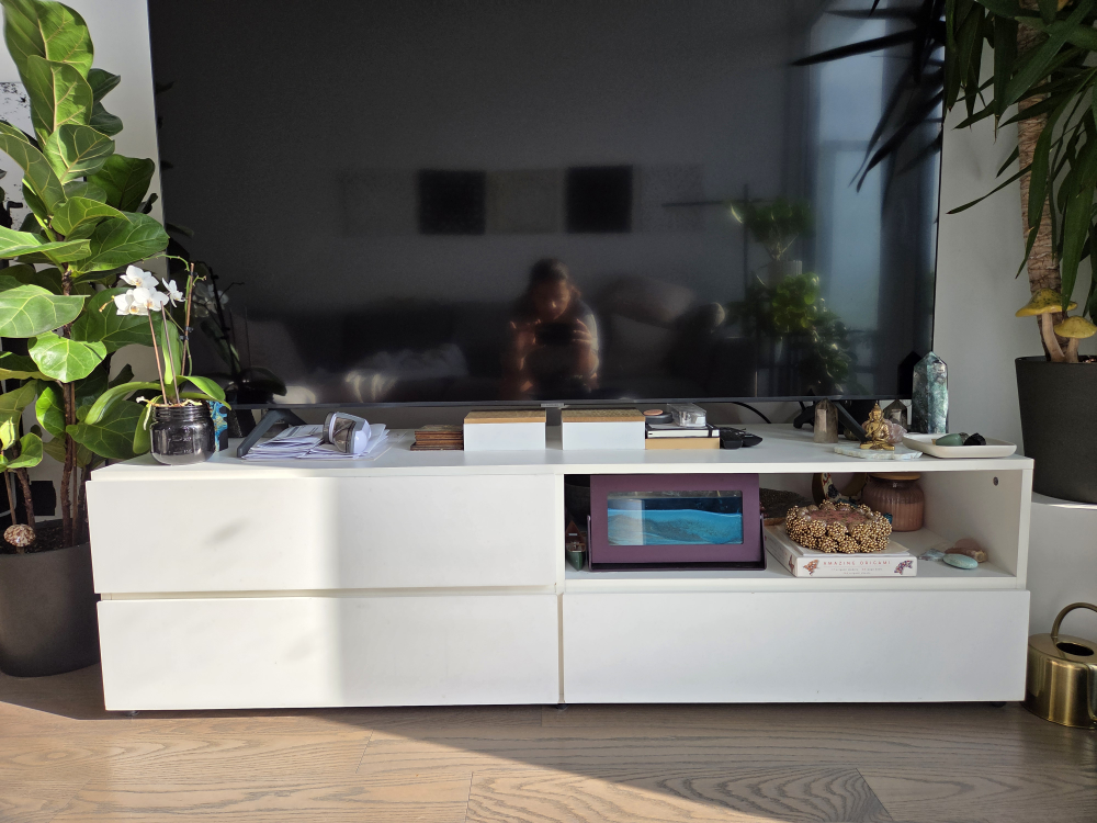 Selling a white TV stand in great condition! It's perfect for any living room setup and offers plenty of storage space. It has a clean, modern look that would fit well with any decor. Feel free to reach out if you're interested or have any questions!