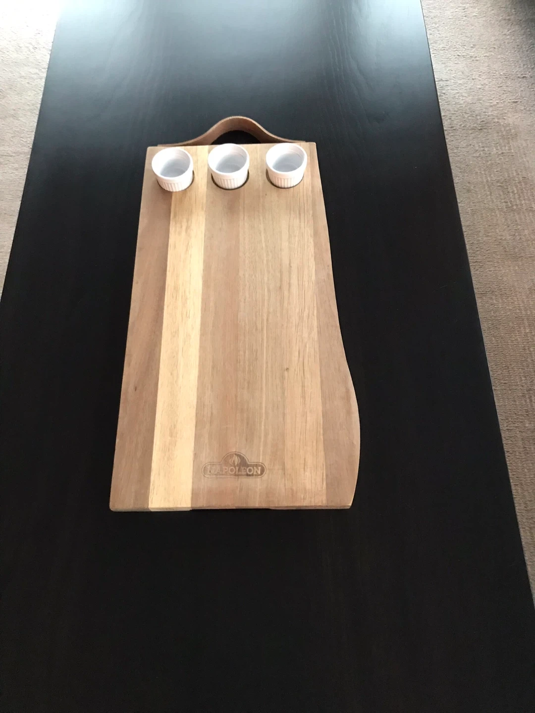 Selling a brand new Napoleon Acacia Charcuterie Board, still in its original box! It's perfect for serving up your favourite cheeses, meats, and snacks. The board includes 3 ramekins, so you can easily add dips and spreads. It's a beautiful piece for entertaining or just adding a touch of elegance to your kitchen