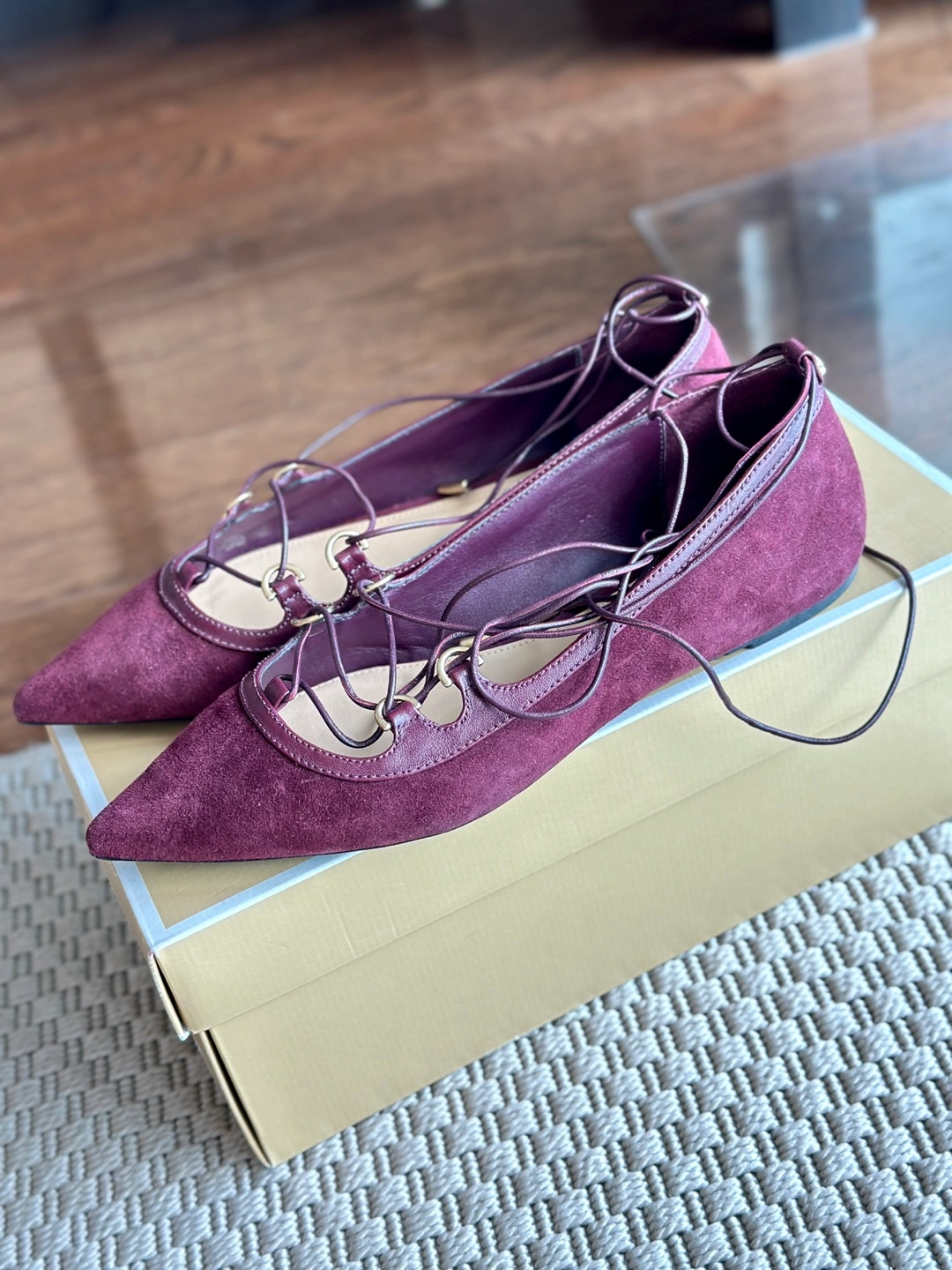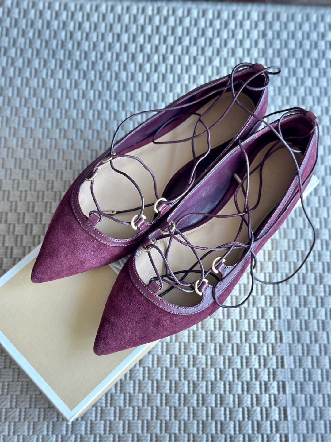56Michael Kors Tabby Flat shoes in size 6.5M. These flats are a beautiful plum colour and made of suede. Very comfortable to wear. Almost brand new condition. Come with original box.