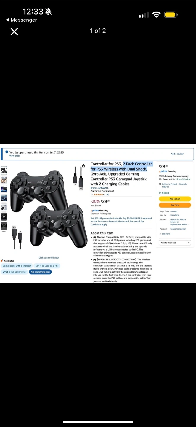 Selling a 2-pack of JAMSWALL wireless controllers for the PS3! They feature dual shock and gyro axis for an upgraded gaming experience. These controllers are compatible with PS3 consoles and support PC (Windows 7, 8, 9, 10) with wired use. Originally bought for $28.78
