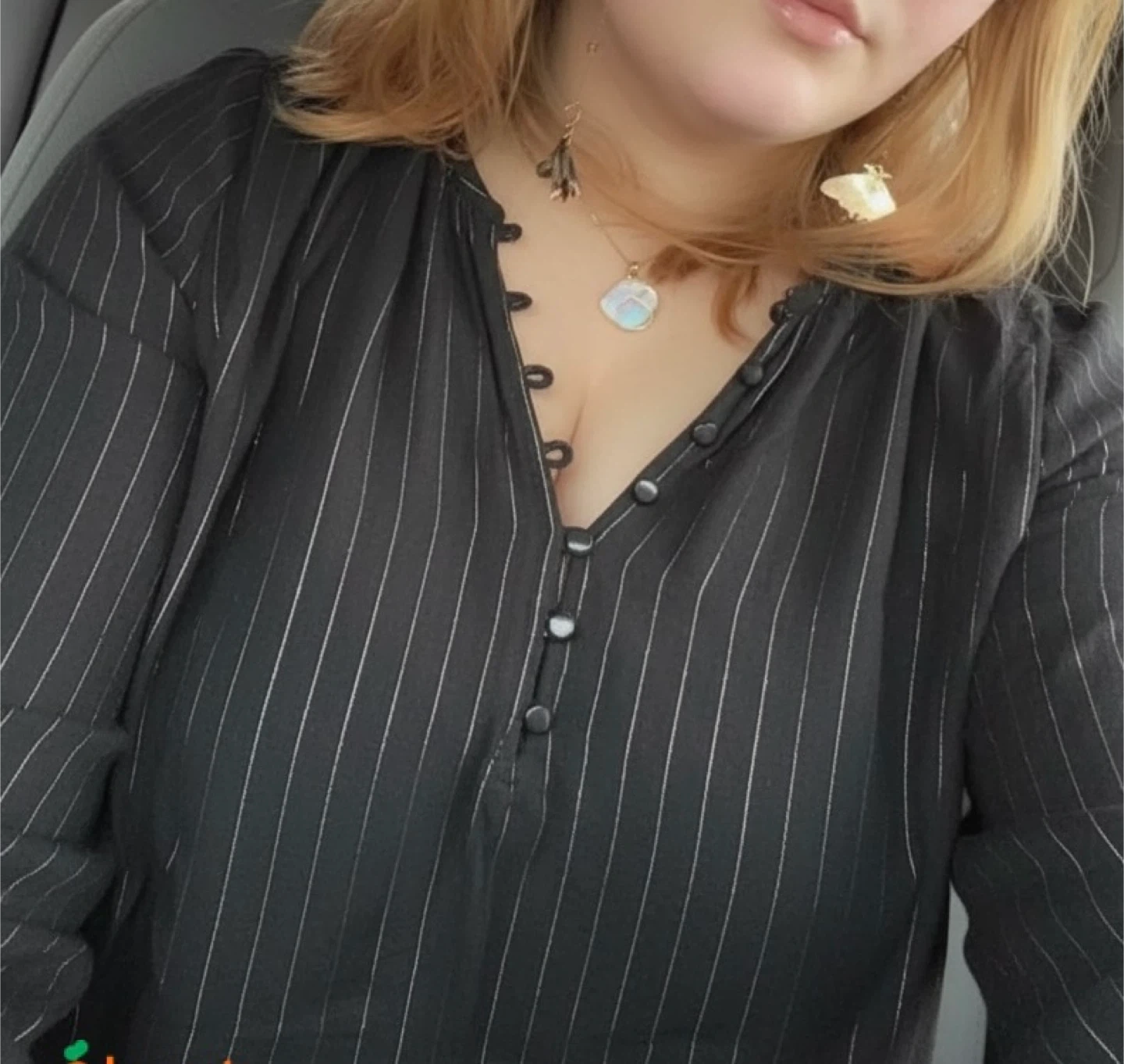 1. Rails blouse in a size large! It's a black colour with subtle vertical stripes. Perfect for a casual or dressed-up look.