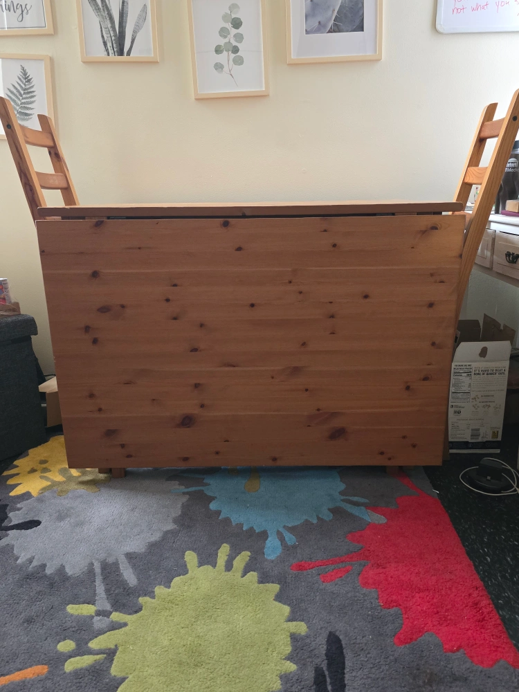 kitchen table has hinges on two sides to seat 10 comfortably. solid wood. ikea. #freecycle - must disassemble and remove from 6th floor walk up apt. would love someone to have this!
