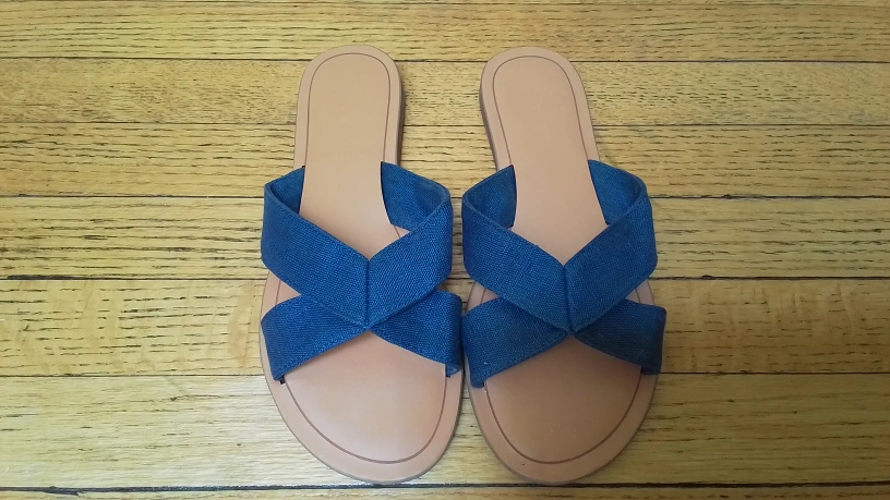Cute pair of sandals with a denim cross strap design! They are a size 8. Perfect for summer!