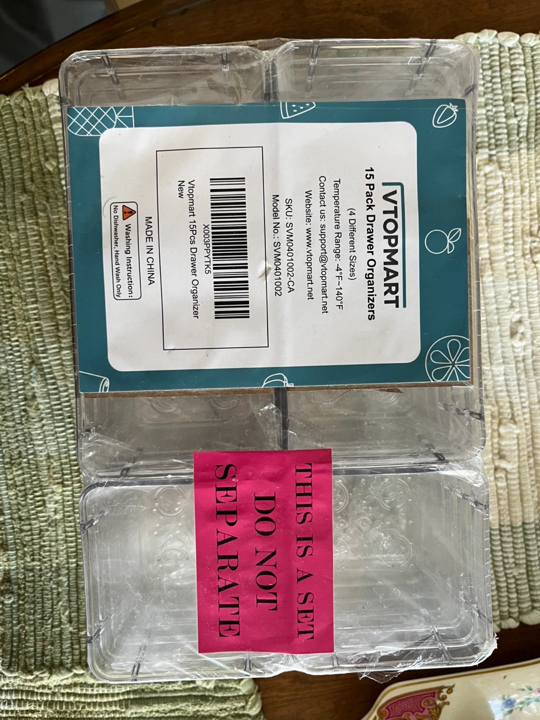 134Selling a brand new IVTOPMART 15-pack of drawer organizers! This set includes four different sizes to help you keep your drawers neat and tidy. The temperature range is -4°F to 140°F. Great for organizing any space! 25$ on Amazon