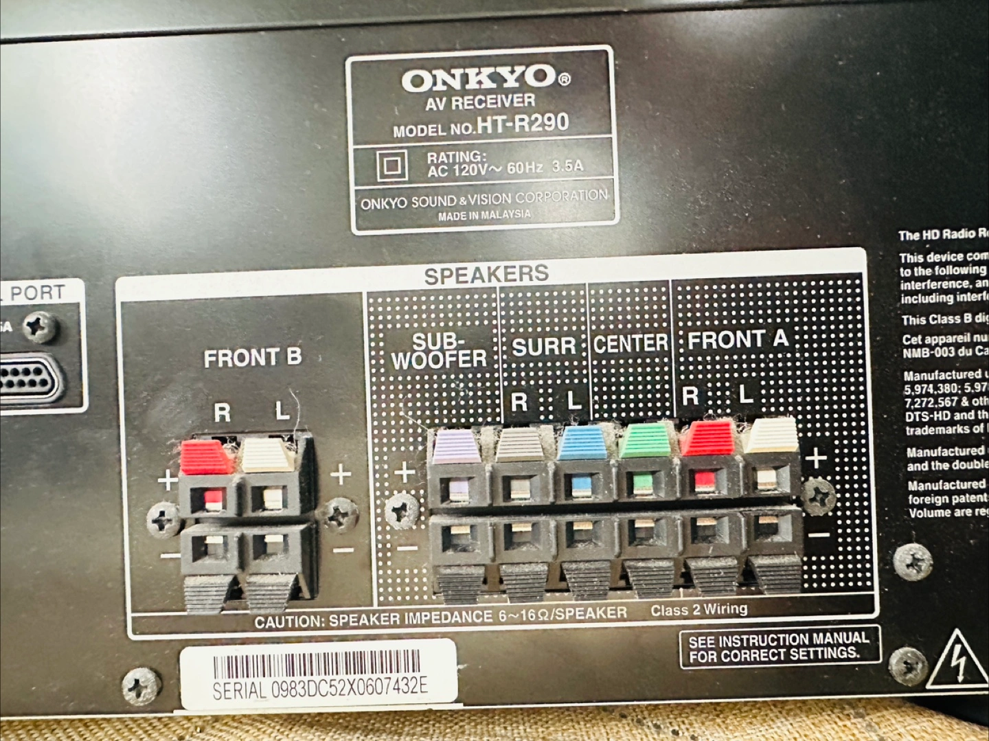 Onkyo AV Receiver HT-R290 Surround Sound Home Theater 5 HDMI 5.1