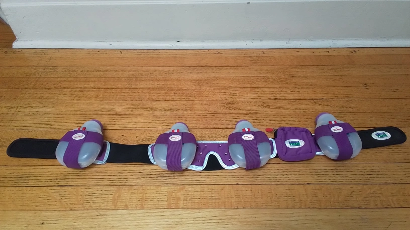 Selling a FuelBelt Helium hydration belt with four bottles. It's in great condition and ready for your next run or race! It features a lightweight design and comfortable fit. The purple and black colour scheme looks great too