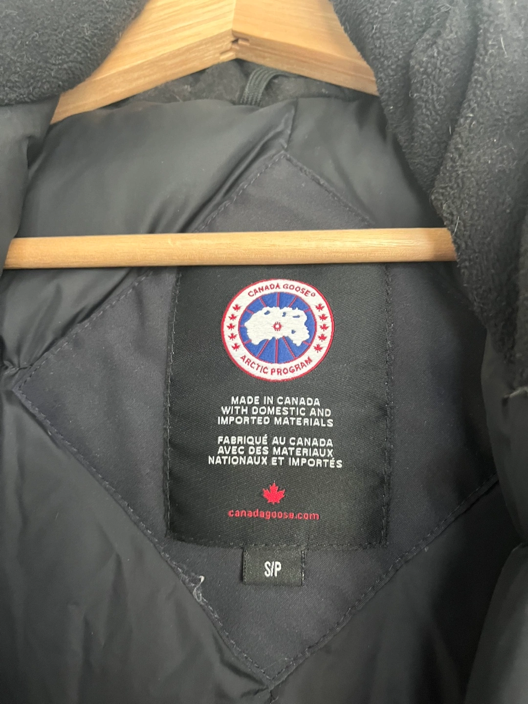 134Selling a Canada Goose parka in size small. It's black and has a fur-trimmed hood. Perfect for staying warm during the Canadian winter!