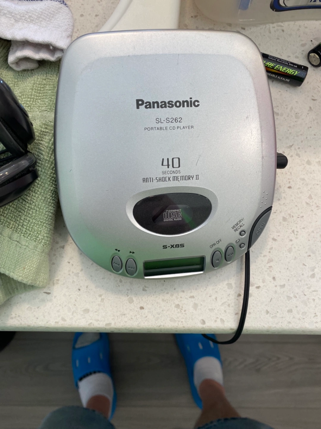 111Selling a Panasonic SL-S262 portable CD player. It features 40 seconds of anti-shock memory II and S-XBS for enhanced sound quality. A great way to enjoy your CDs on the go! Comes with carrying case.