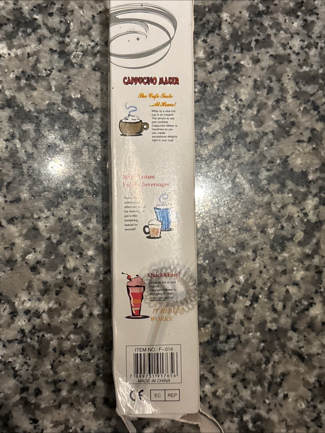 I don’t really drink coffee anymore and don’t need it. I'm selling a cappuccino maker! It whips up a nice hot froth. It's simple to use and compact, making it handheld so you can enjoy fresh cappuccinos right in your mug! It's great for hot or cold beverages. The model number is F-016