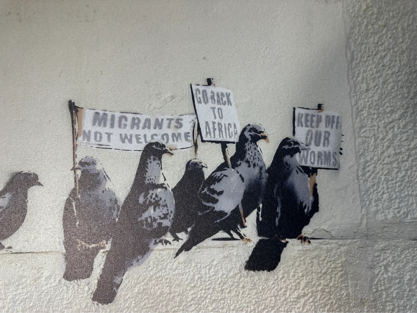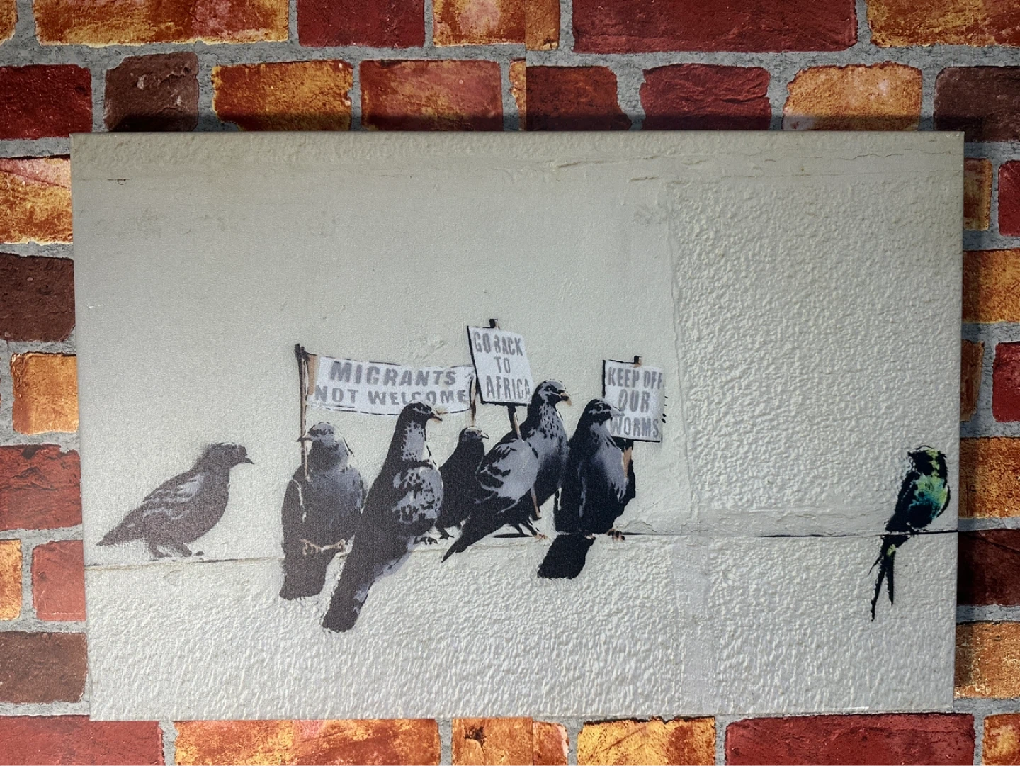 Banksy Inspired "Migrants Not Welcome" Pigeon Canvas Print