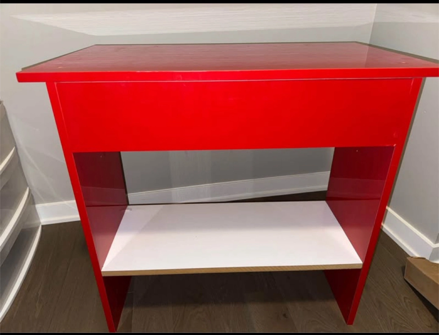 Selling a vibrant red and white side table! It's in great shape and would be perfect for adding a pop of colour to any room. The table features a handy shelf for extra storage or display