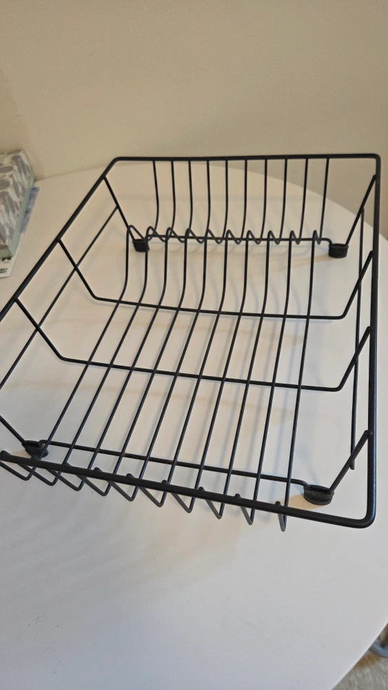 Selling a black wire dish drying rack! It's in great condition and ready to help keep your kitchen organized. Perfect for small spaces or anyone who likes to keep their counters clutter-free