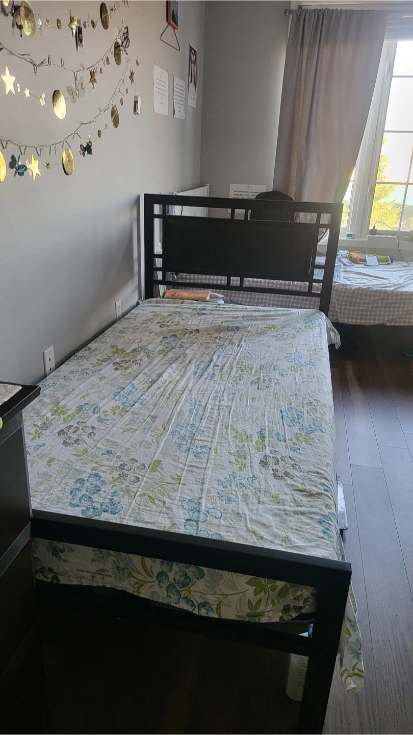 Selling a black metal twin bed frame along with a twin mattress.It's in good condition and ready for a new home!