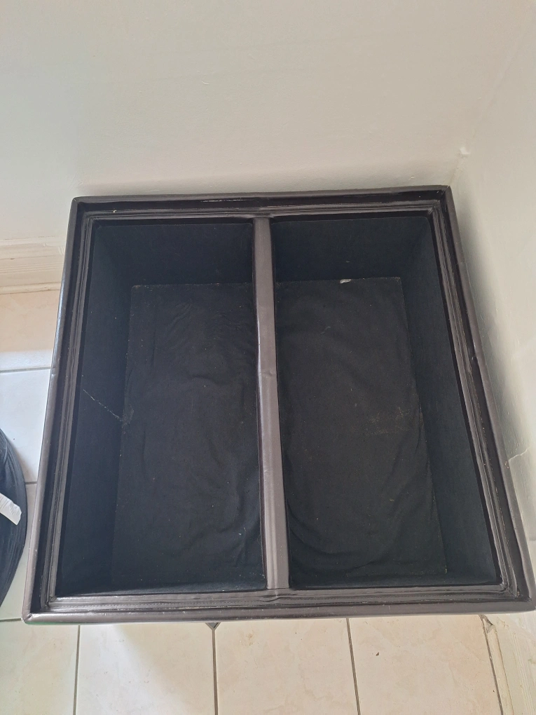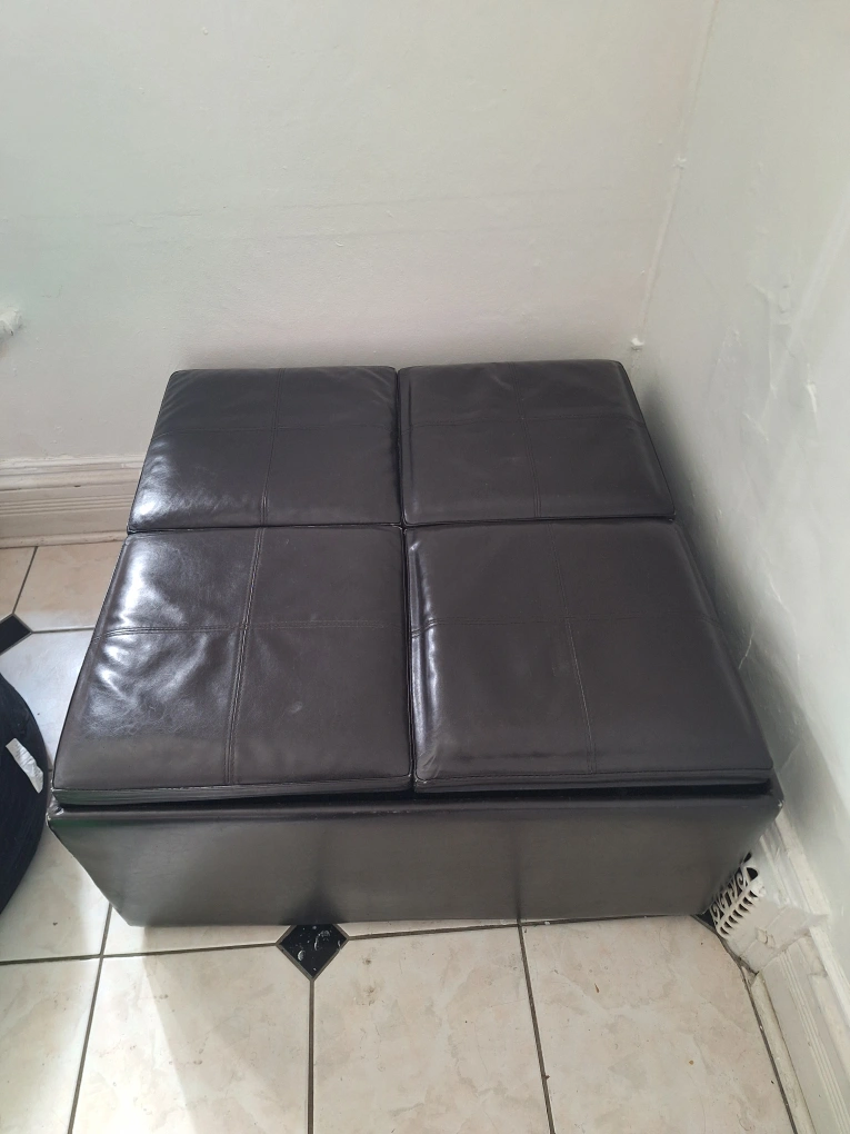 Selling a dark brown storage ottoman. It's in good condition and offers convenient storage space. The top can be flipped over to reveal trays.