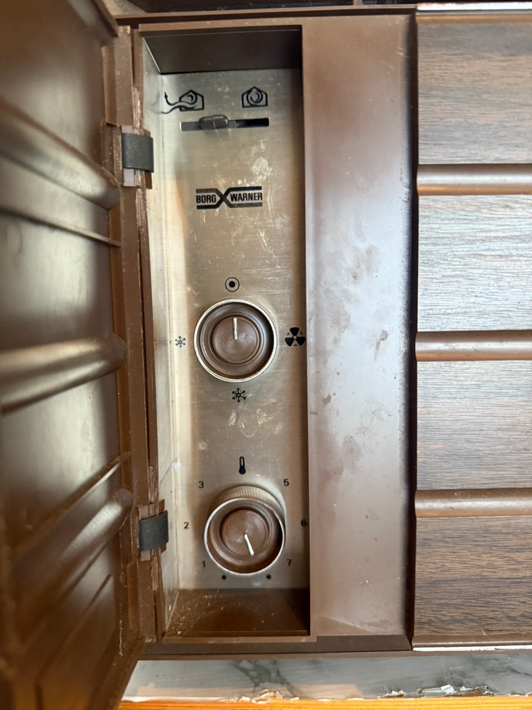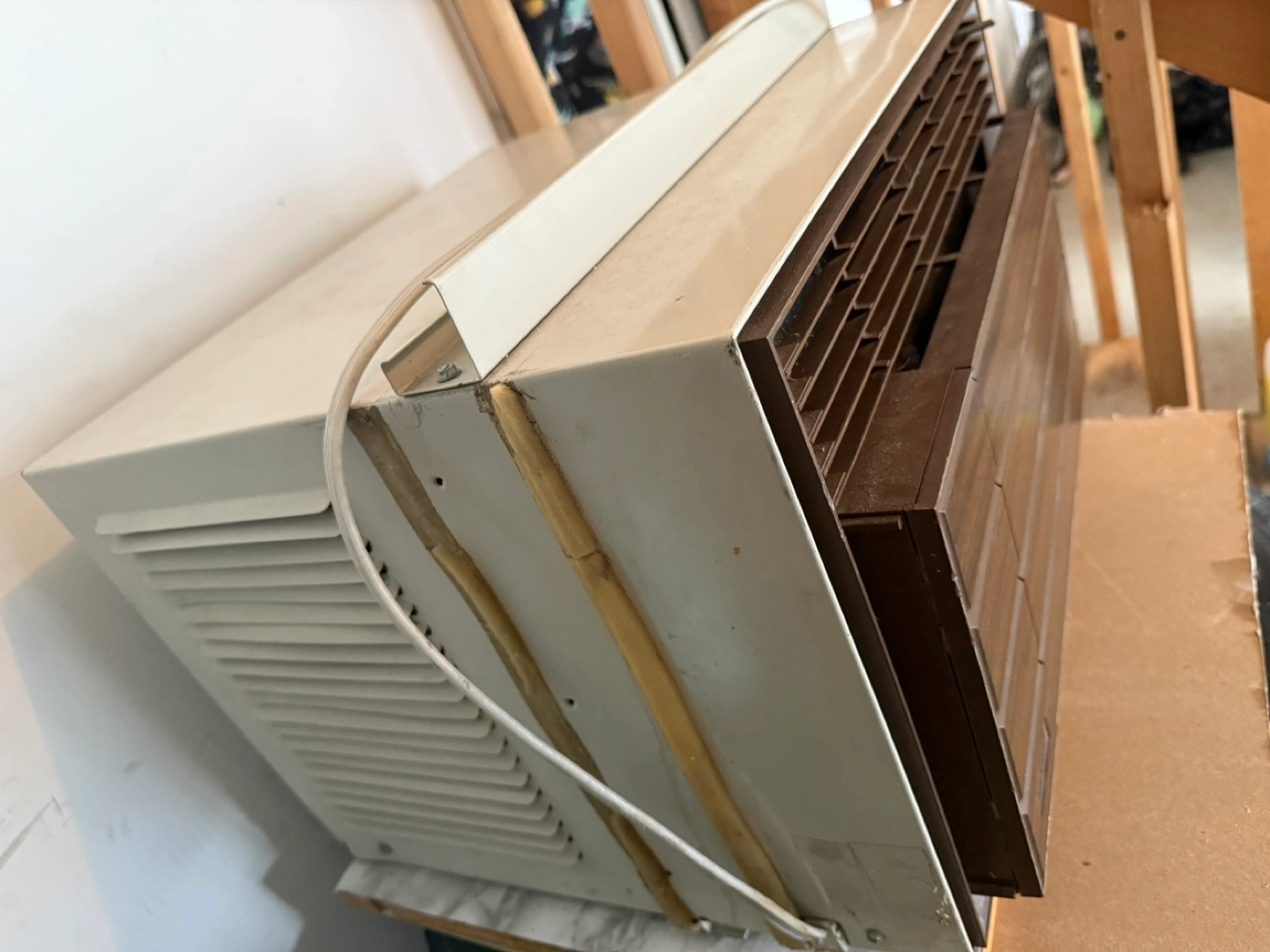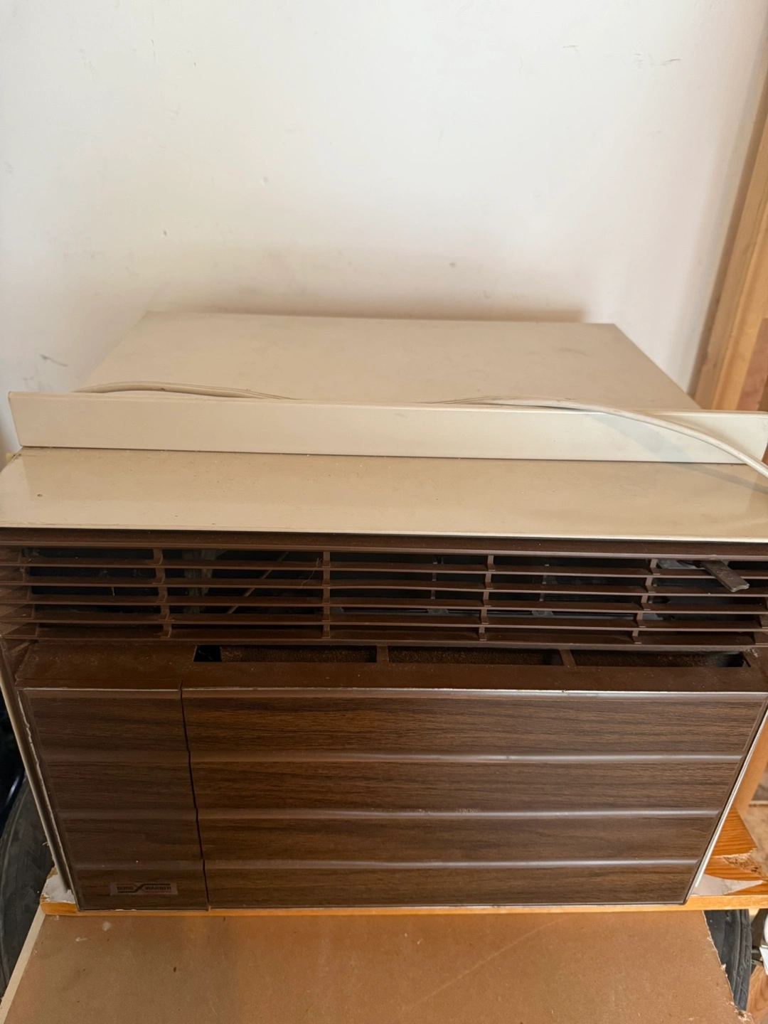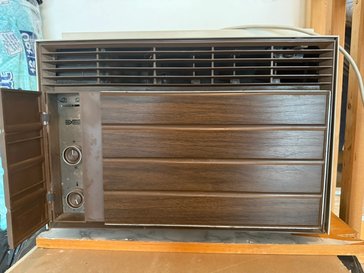 Selling a Borg Warner window air conditioner. It has a wood-grain finish on the front and temperature controls on the side.