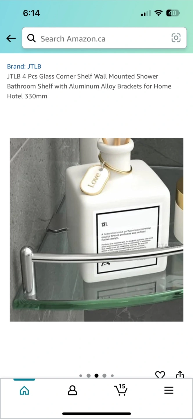 Selling a brand new, still-in-box JTLB 4-piece glass corner shelf. It's a wall-mounted shower bathroom shelf with aluminum alloy brackets, perfect for home or hotel use. The shelf measures 330mm. Originally bought for $68.89, it's a great addition to any bathroom!