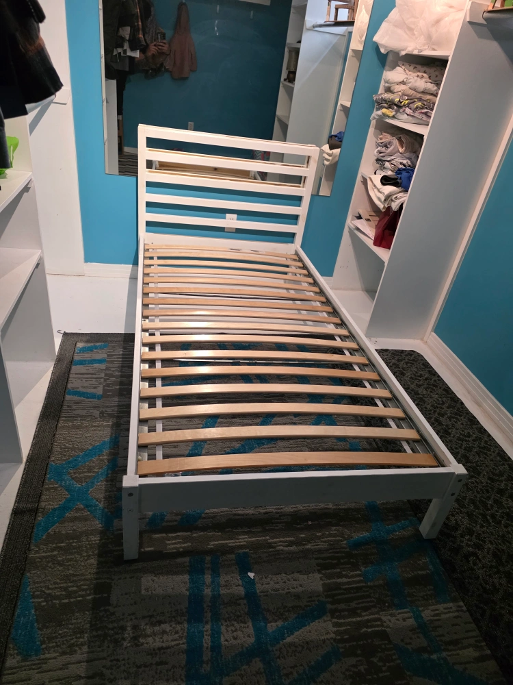 Selling a twin bed frame from Ikea. It's in good condition and ready for a new home! Perfect for a small space or a kid's room. If you see this ads it means still available. Near to river cree on west side to pick up.