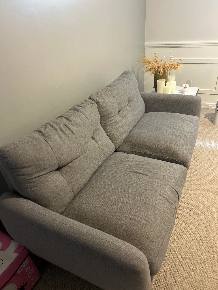 Selling a comfy grey sofa! It's in great shape.. The cushions are nice and supportive, and it's a great neutral colour that will fit in with any decor. If you see this ads it means still available. Near to river cree on west side to pick up.