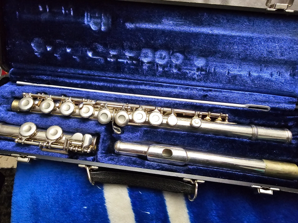 Selling a flute with a case. It appears to be in good condition and comes with a cleaning rod. Great for a student or someone looking to pick up a new hobby!