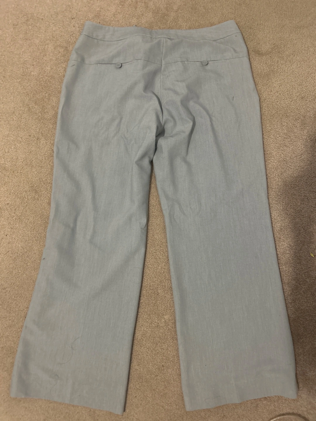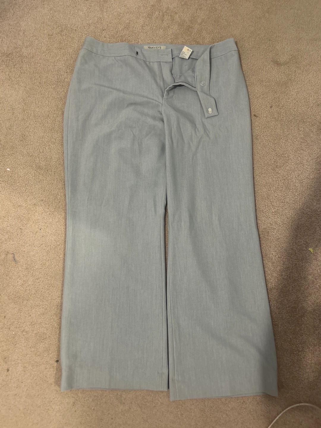 These are a pair of Grey flare leg pants from RW&CO. They're in great condition and ready for a new home!