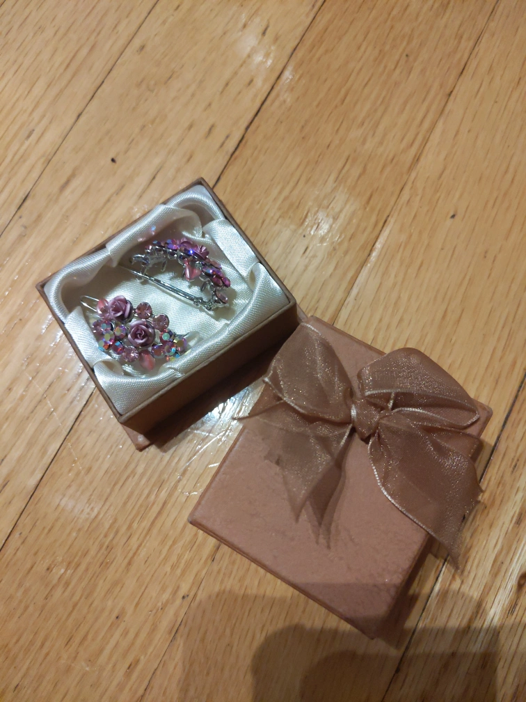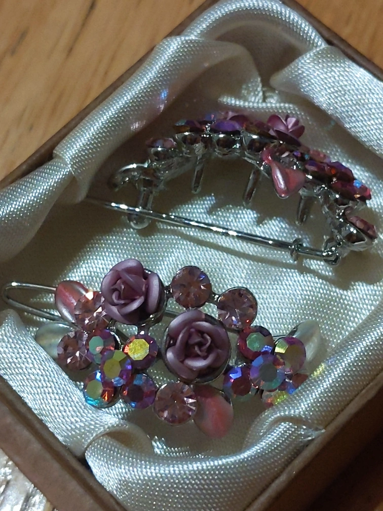 Selling a pair of vintage hair clips with a lovely floral design! They come in their original box and are in great condition. Perfect for adding a touch of elegance to any hairstyle