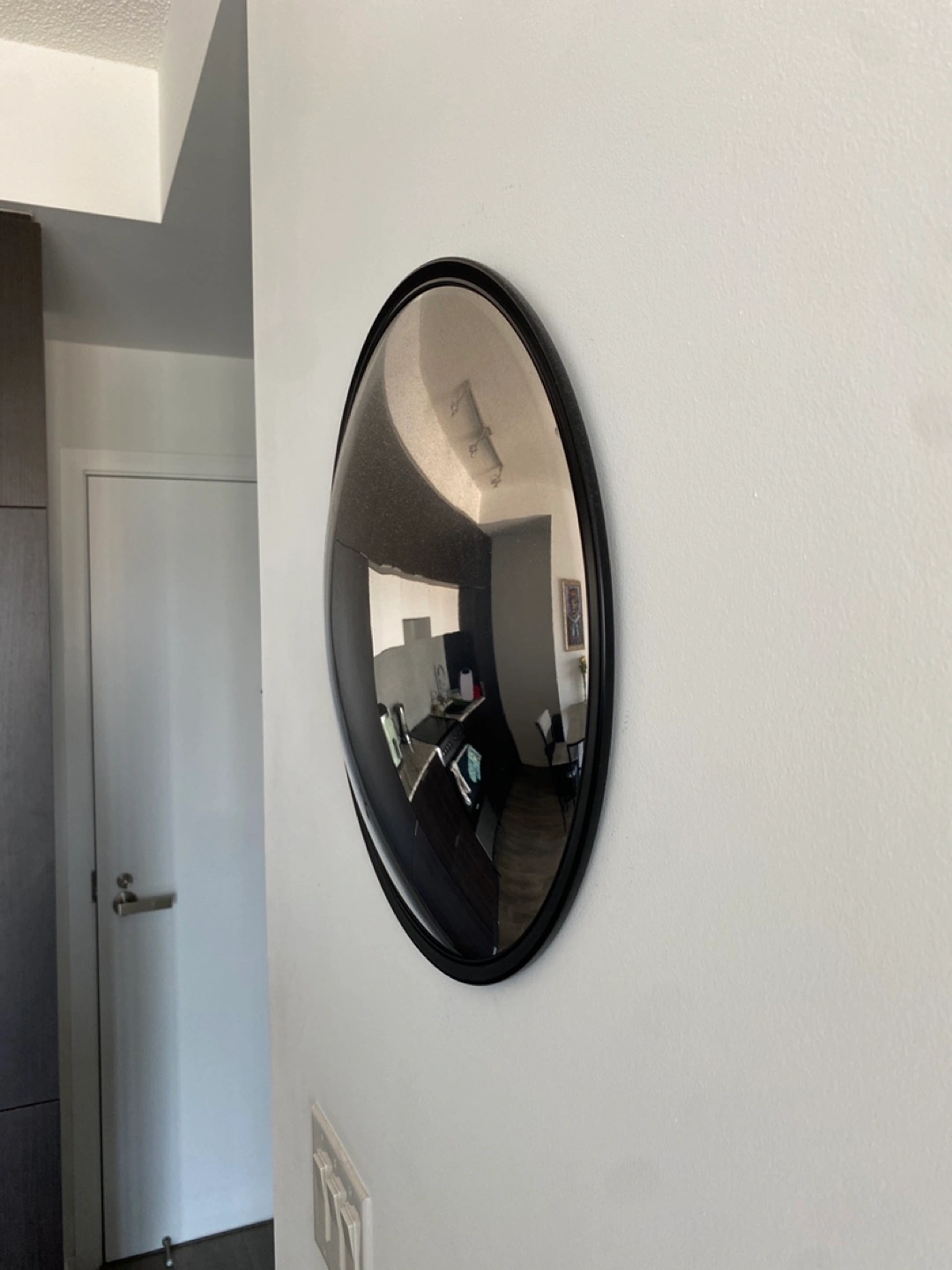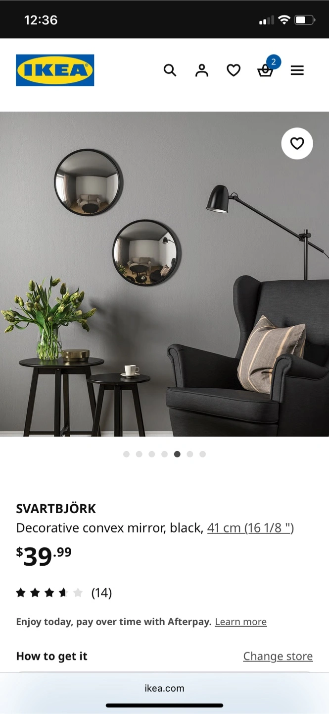 Selling an IKEA SVARTBJÖRK decorative convex mirror in black. It measures 41 cm (16 1/8 "). It's in great shape and ready to add a unique touch to your space!