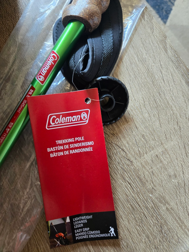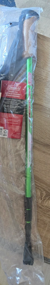 Selling a brand new Coleman Trekking Pole! It's still in its original packaging and has never been used. This lightweight pole features an anti-shock system for comfortable hiking and easy grip. It is adjustable from 27 to 53 inches.