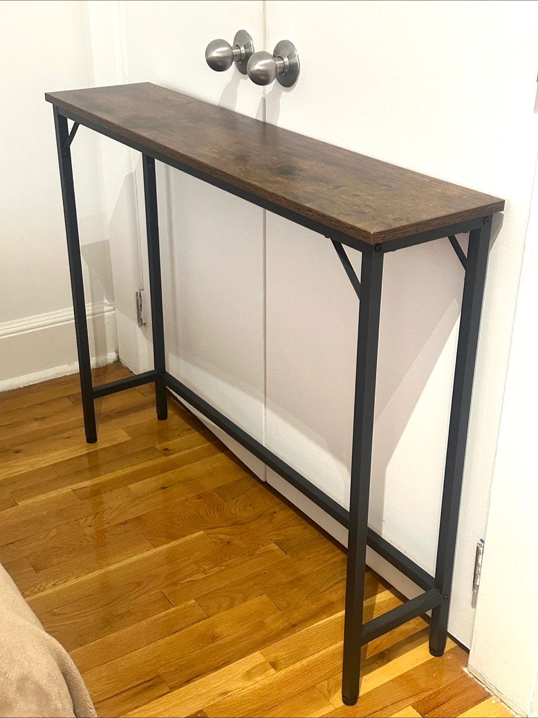 Selling a console table with a sleek design. It's perfect for small spaces or as an accent piece in your living room or entryway. The table features a sturdy metal frame and a durable top.