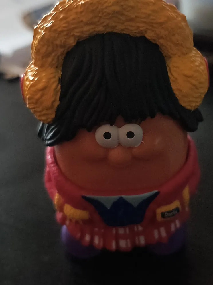 Here's a cute Darla figurine wearing earmuffs! It has a charming design and would make a great addition to any collection or a fun little gift.