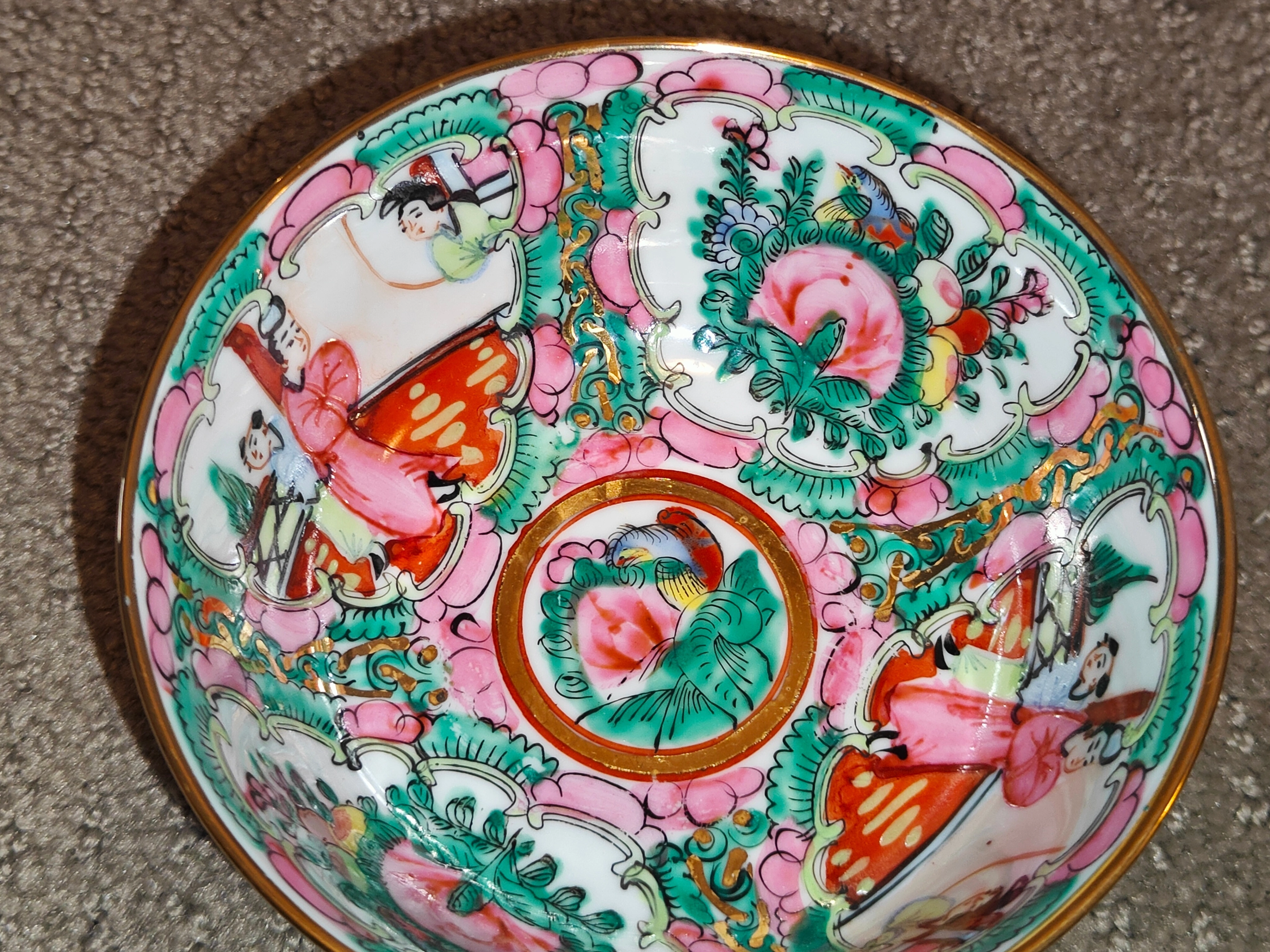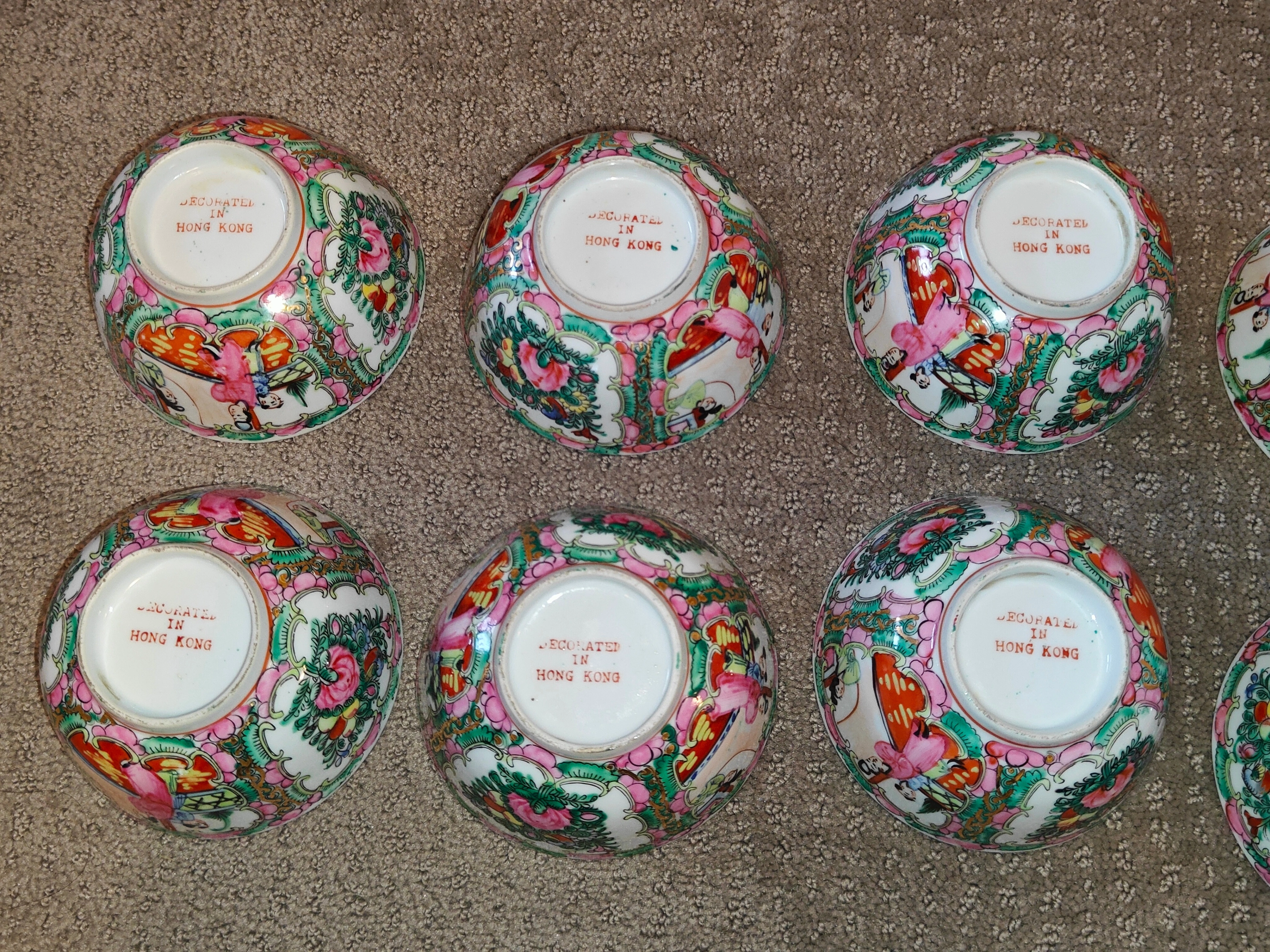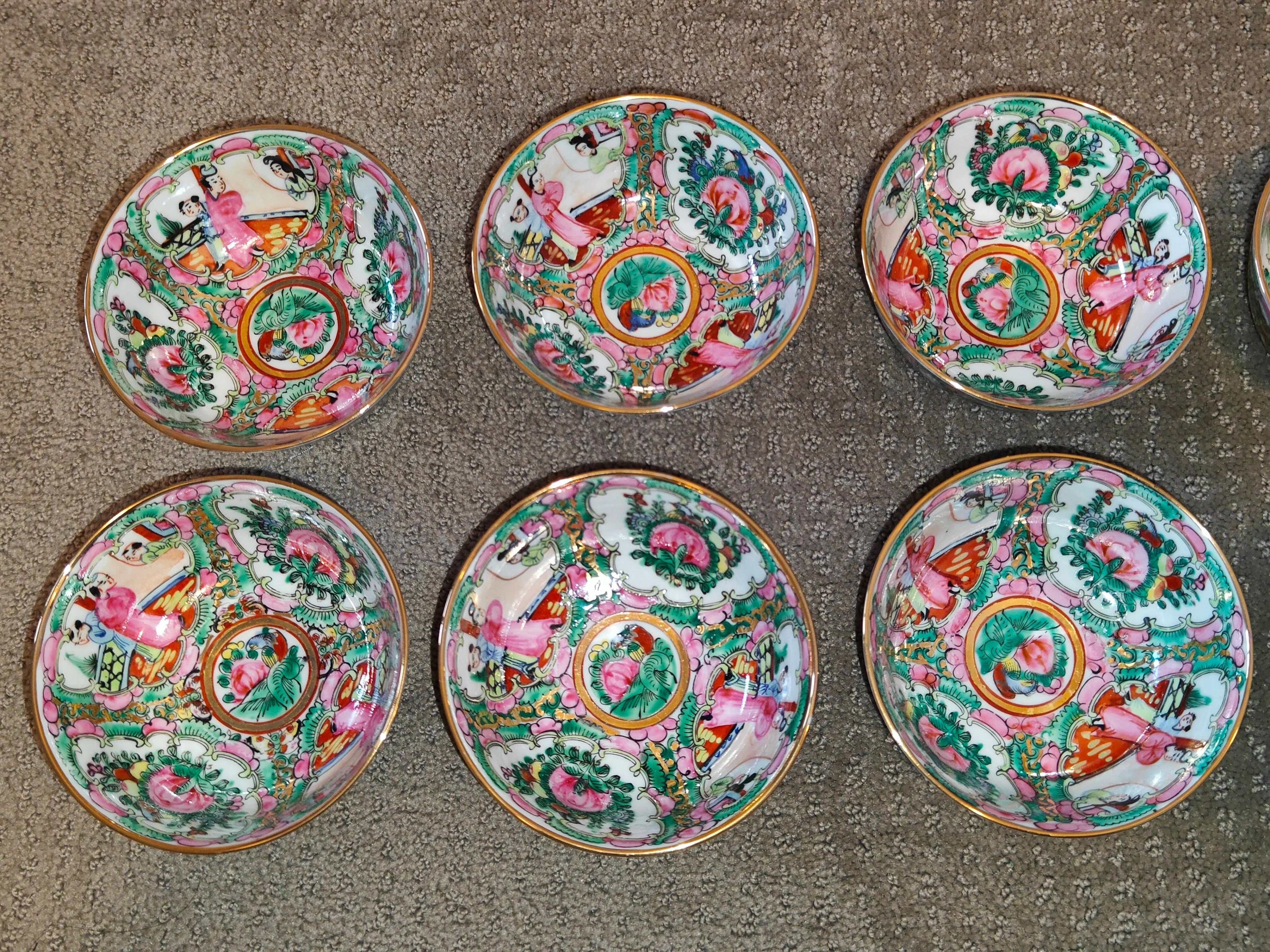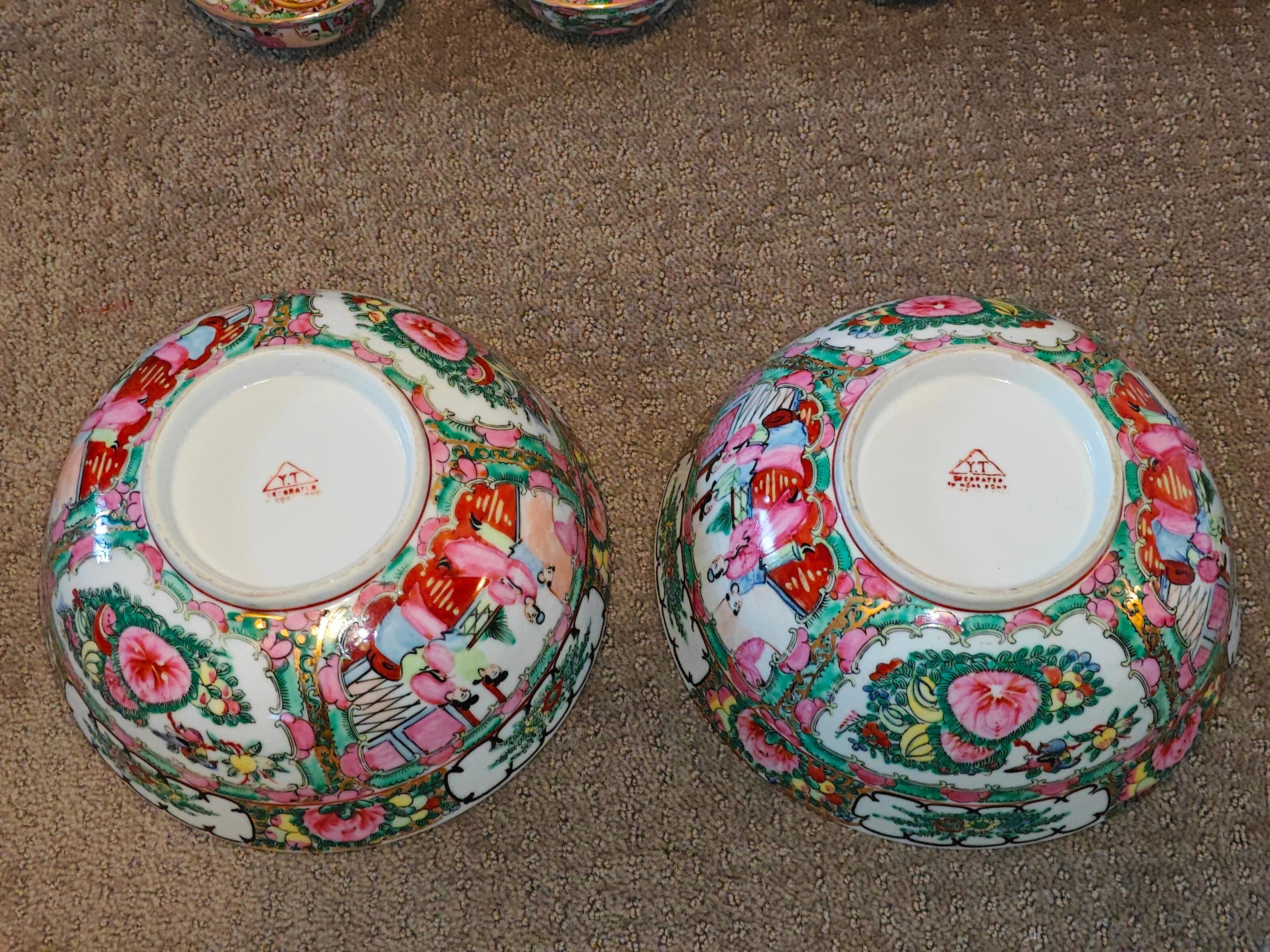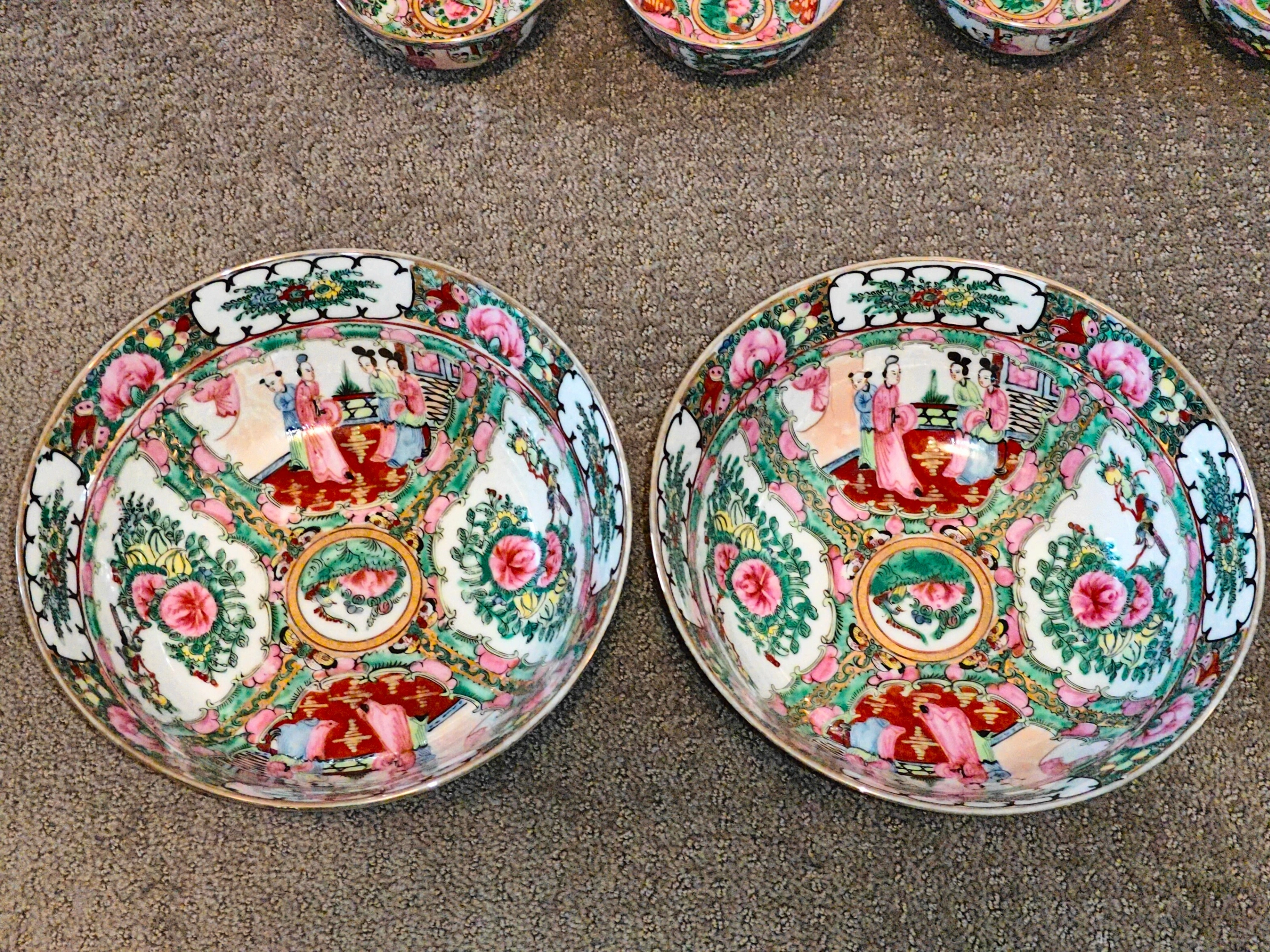 Chinese Rose Medallion Famille Porcelain Hand Painted Bowl Set
