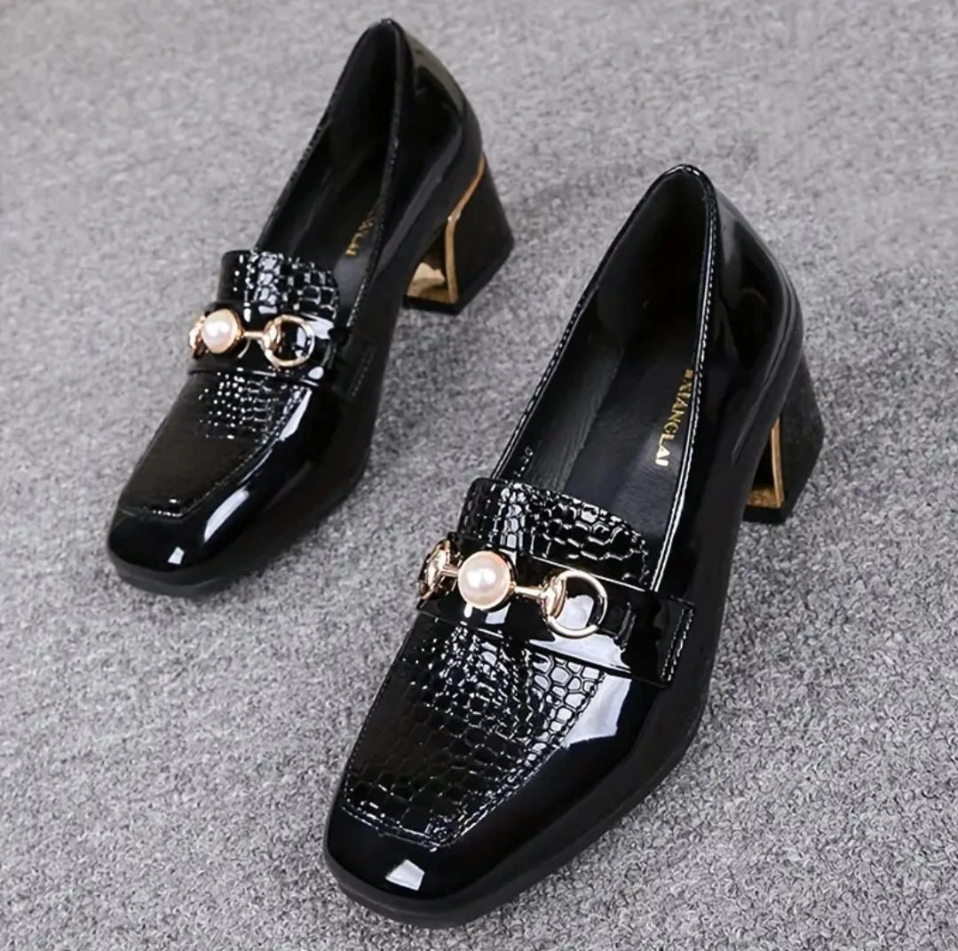 Selling a Brand New stylish black loafers in size 8. They feature a unique design with a decorative accent on the top. These loafers looks great and perfectly adding a touch of elegance to any outfit.