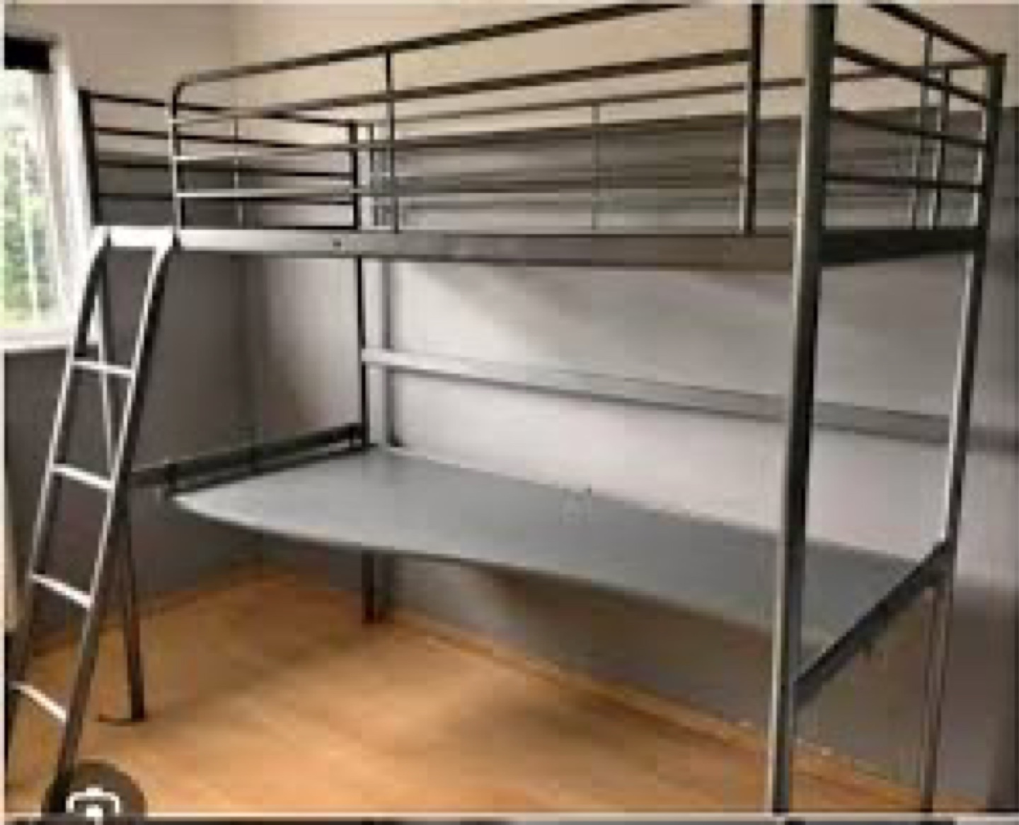 Selling a loft bed with a built-in desk! It's a great space-saver for smaller rooms or apartments. Perfect for students or anyone needing a functional and stylish setup. (No mattress.)