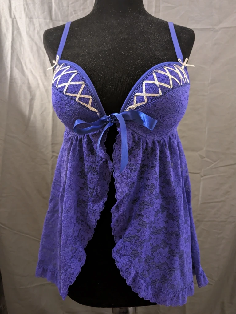 Selling a purple lingerie piece from Perfectly Me by la senza. It features a delicate lace design and a ribbon detail. It's in great condition and ready for a new home!