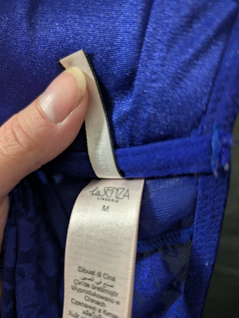 Selling a purple lingerie piece from Perfectly Me by la senza. It features a delicate lace design and a ribbon detail. It's in great condition and ready for a new home!