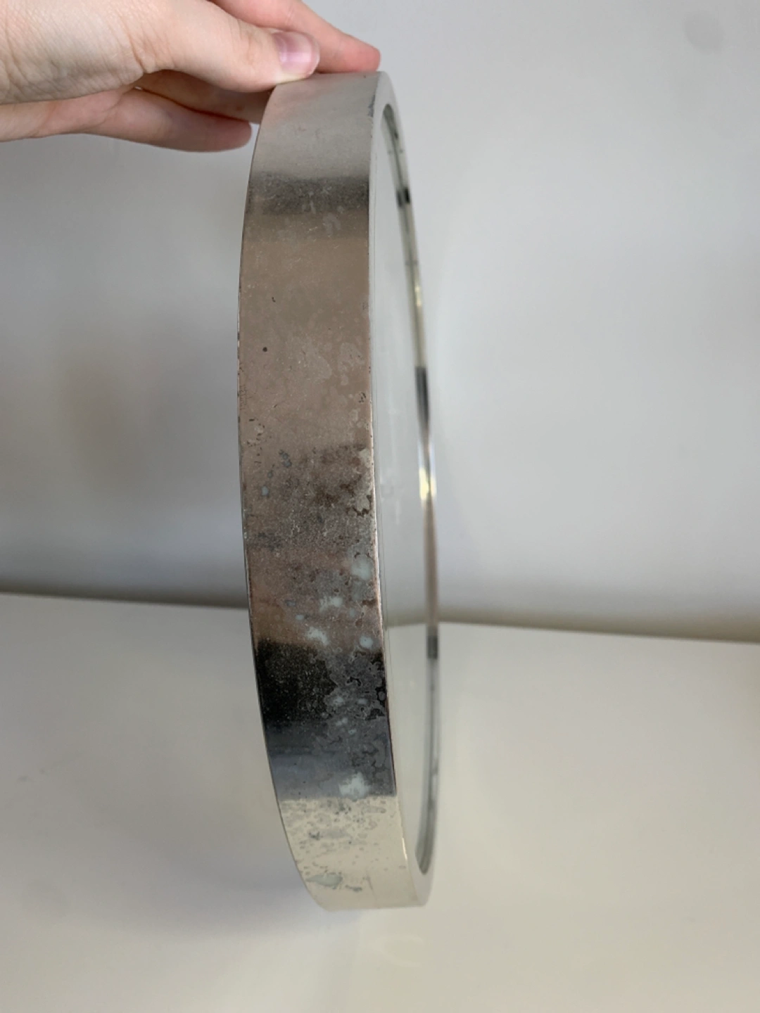 Some of the silver is a bit chipped off but it’s on the sides and not noticeable when hanged.